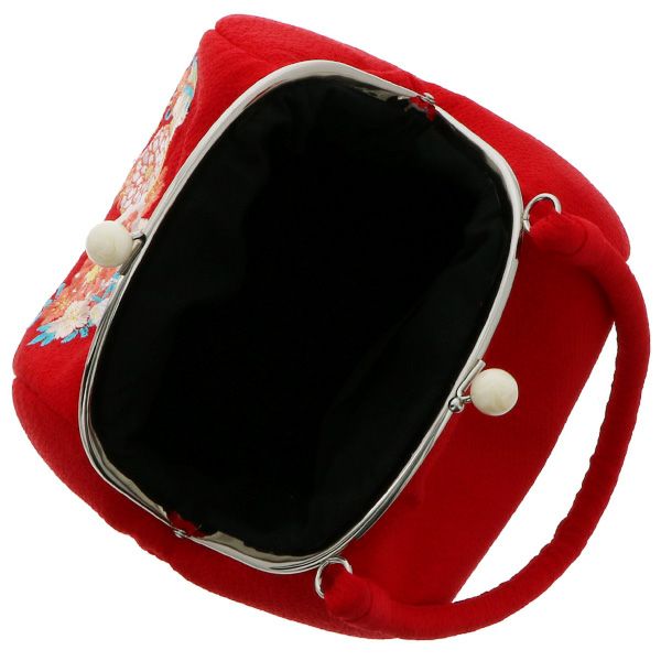 4. 刺繍がま口バッグ単品「赤色 毬」振袖バッグ 着物バッグ 刺繍バッグ 成人式の振袖に、卒業式に袴に 和装バッグ 【メール便不可】<H>