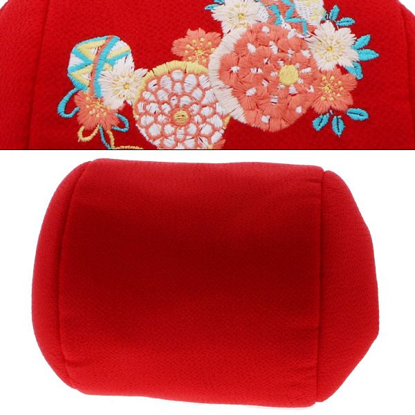 【カラー】鮮やかな赤色のちりめん生地に毬、桜の刺繍。