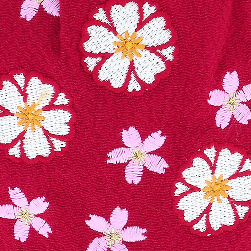 01ラズベリーレッド…赤みの強い濃い赤ピンク色地に、お花の刺繍