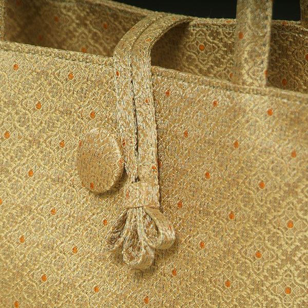 お茶やお花、三味線などのお稽古バッグとして、また着物のサブバッグとして重宝していただけるくるみボタン付の縦長のバッグです。