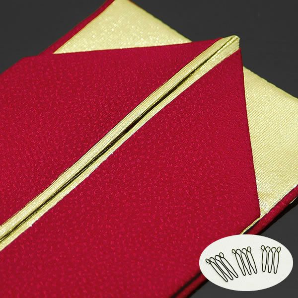 振袖 成人式 前撮り 重ね衿 (卒業式応援75%SALE 2/19迄)正絹伊達衿(重ね衿)「濃く深い赤色×ゴールド」衿止めピン付207-2 振袖 成人式 前撮り 重ね衿<R>ss2303wkm10