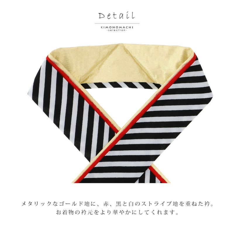 重ね衿 振袖用 伊達衿 正絹 「黒ストライプ×赤×ゴールド」 コームピン(衿止めピン)付き リバーシブル 4way 両面重ね衿 モダン カラフル 縞 豪華 成人式 重ね襟 振袖 卒業式 袴 二尺着物 フォーマル 着物 伊達襟 振袖小物 日本製 【メール便対応可】<H>