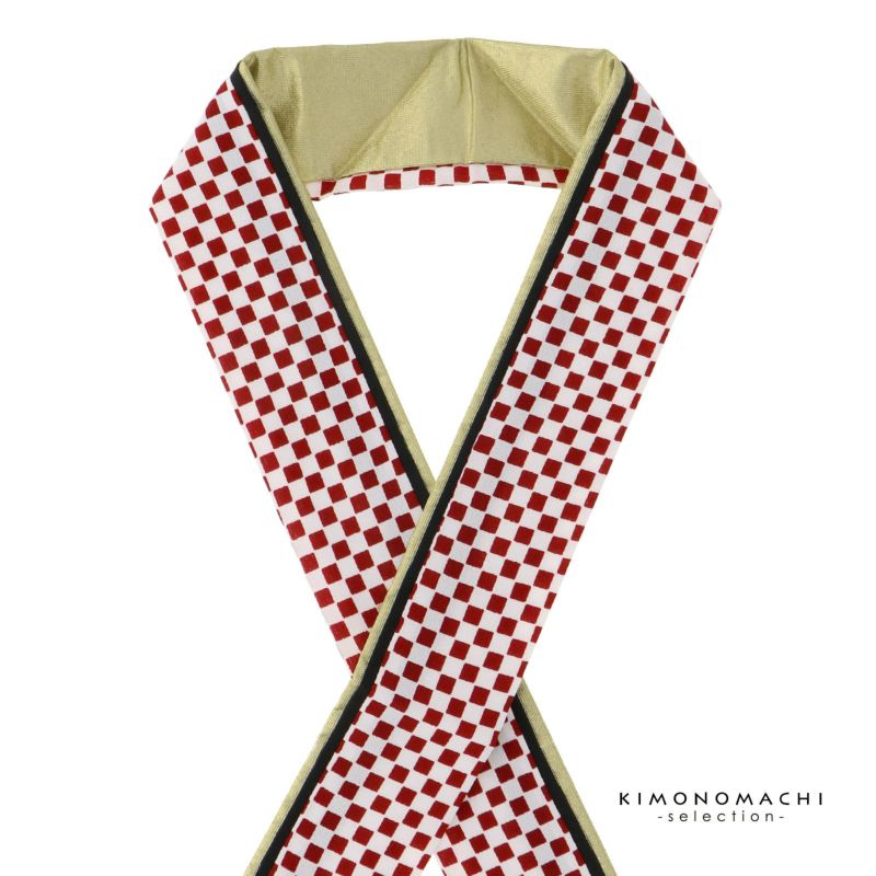 【色柄】赤と白の市松文様、黒、メタリックなゴールドを重ねた衿。
