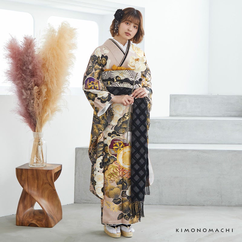 しごき 振袖用 「アイボリー×黒、チェック・インクブラック×黒、チェック」 志古貴 豪華 おしゃれ お洒落 成人式 結婚式 振袖 振袖用 ママ振袖 着物 振袖小物 日本製