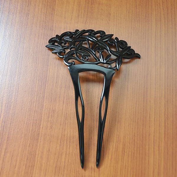 【Prices down2】透かし彫り銀杏(イチョウ)型「唐草 鼈甲調 黒」(HA-1007)大人の綺麗な髪飾り♪かんざし♪【メール便不可】ss2506wkk10