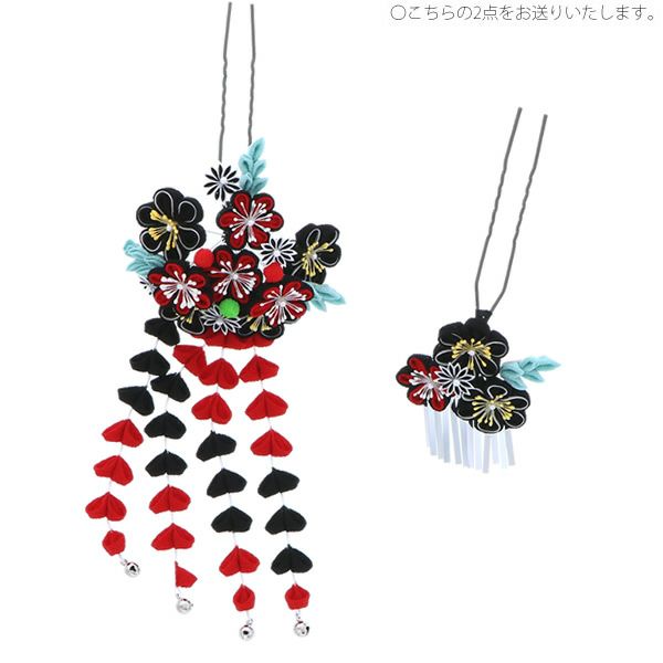 (卒業式応援10%OFFCOUPON1/22迄)【Prices down3】つまみ細工かんざし2本セット「黒×赤 梅」きもの町オリジナル♪振袖 日本髪 華やかつまみ細工髪飾り【メール便不可】ss2512wkk60