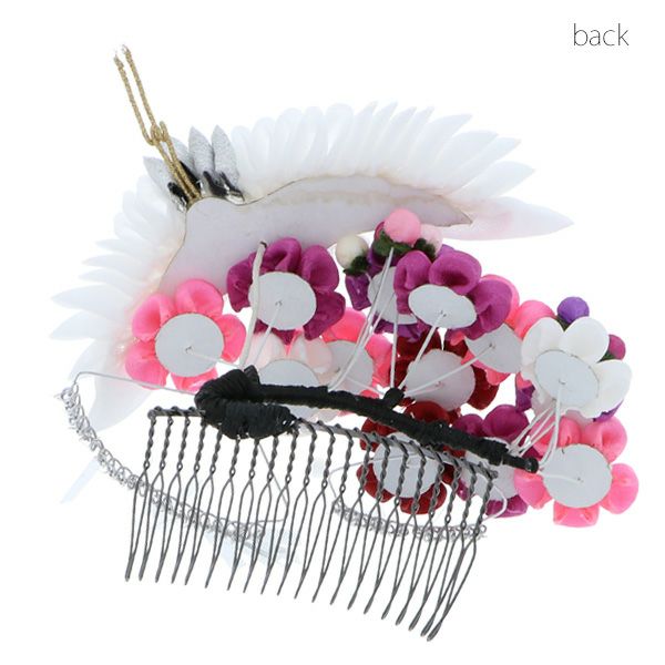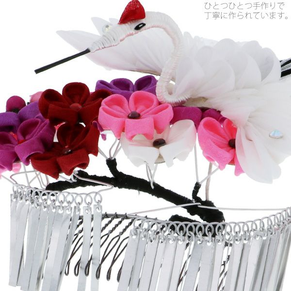 (卒業式応援10%OFFCOUPON1/22迄)【Prices down3】つまみ細工かんざしコーム「ピンク×パープル 梅に大きな鶴」(TS-4)振袖 日本髪 華やかつまみ細工髪飾り【メール便不可】ss2512wkk55