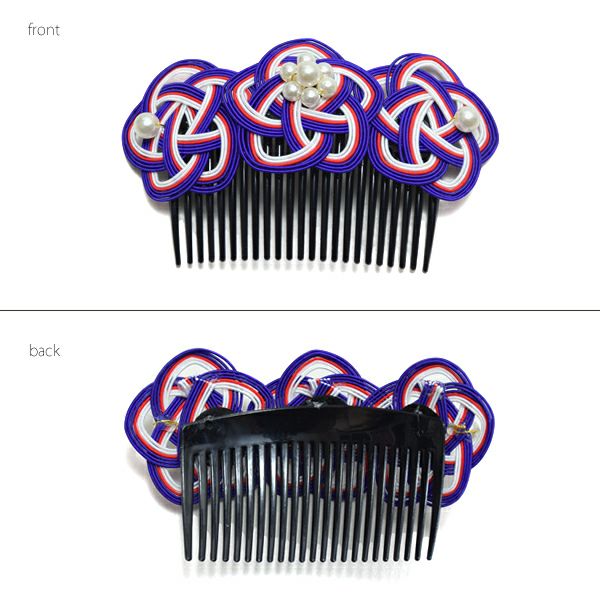 (卒業式応援10%OFFCOUPON1/22迄)【Prices down3】水引き髪飾り「紺藍×赤×白色」コーム髪飾り 櫛 ヘアアクセサリー KK-43【メール便不可】ss2509wkk35