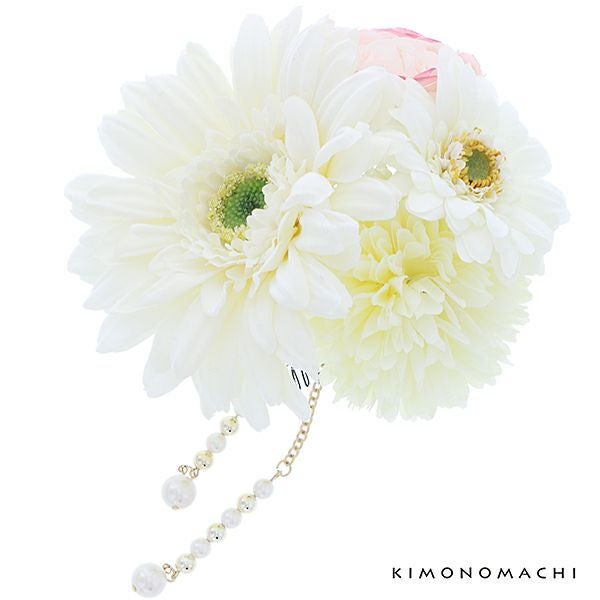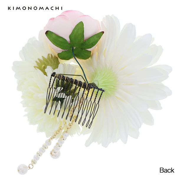 (卒業式応援75%SALE 2/19迄)【Prices down5】振袖髪飾り「白色系のお花、パールビーズ下がり飾り」お花髪飾り コーム髪飾り 華やか 成人式の振袖、卒業式の袴にも (6407-3)【メール便不可】ss2512wkk35