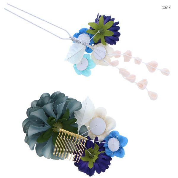 (卒業式応援10%OFFCOUPON1/22迄)【Prices down4】振袖髪飾り2点セット「ブルー系のお花、つまみのお花」つまみ細工かんざし 成人式の振袖、卒業式の袴にも 前撮り、成人式、結婚式の振袖に お花髪飾り (No.1737)【メール便不可】ss2512wkk40