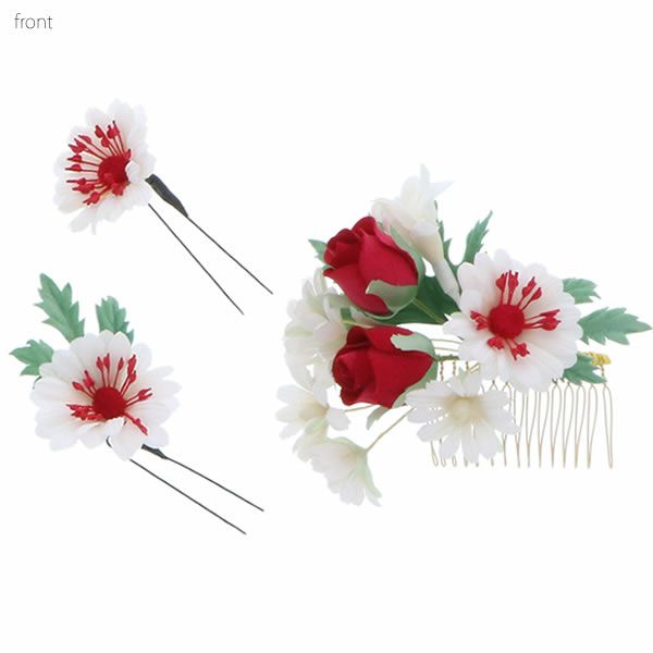 (卒業式応援最大70%OFF 2/5迄)【Prices down4】振袖髪飾り3点セット「白、赤色のお花」お花髪飾り コーム髪飾り 袴髪飾り 成人式の振袖、卒業式の袴にも (3566)【メール便不可】ss2512wkk45