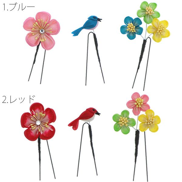 (卒業式応援10%OFFCOUPON1/22迄)【Prices down3】つまみ細工髪飾り3点セット「ブルー、レッド、ホワイト、グリーン」Uピン髪飾り ポイント髪飾り 振袖髪飾り 【メール便不可】ss2509wkk25