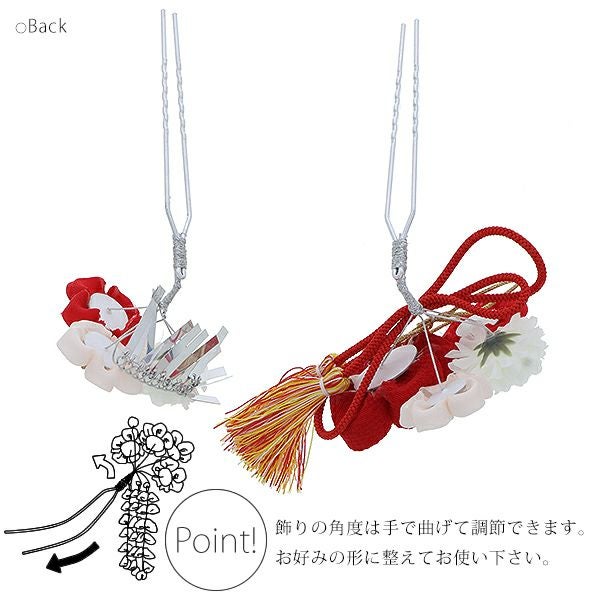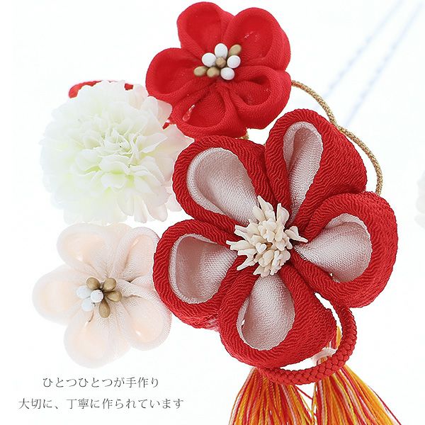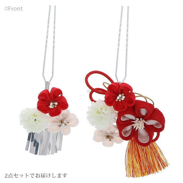 (卒業式応援75%SALE 3/5迄)【Prices down5】振袖髪飾り2点セット「赤色のつまみのお花、白色のお花 房飾り、ビラカン付き」つまみ細工かんざし 振袖髪飾り 華やか髪飾り お花髪飾り つまみ細工髪飾り (1773)【メール便不可】ss2512wkk25