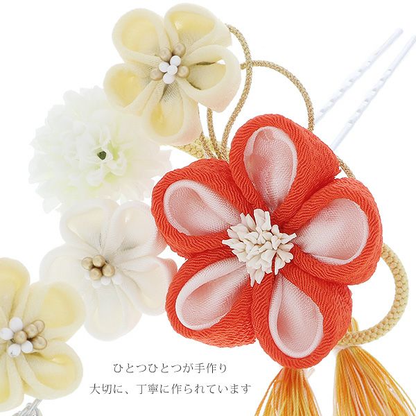 (卒業式応援10%OFFCOUPON1/22迄)【Prices down5】振袖髪飾り2点セット「オレンジ色のつまみのお花、白色のお花 房飾り、ビラカン付き」つまみ細工かんざし 振袖髪飾り 華やか髪飾り お花髪飾り つまみ細工髪飾り (1773)【メール便不可】ss2512wkk25