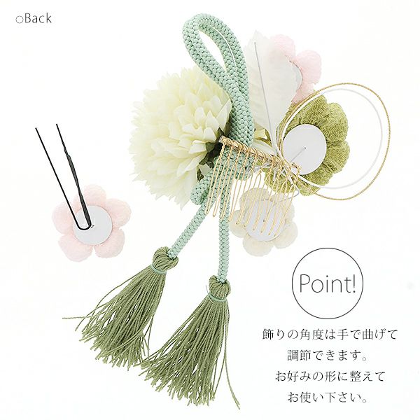 (卒業式応援10%OFFCOUPON1/22迄)【Prices down5】振袖髪飾り2点セット「グリーン お花とつまみのお花、房飾り」つまみ細工髪飾り 振袖髪飾り 華やか髪飾り コーム お花髪飾り (1758)【メール便不可】ss2512wkk25
