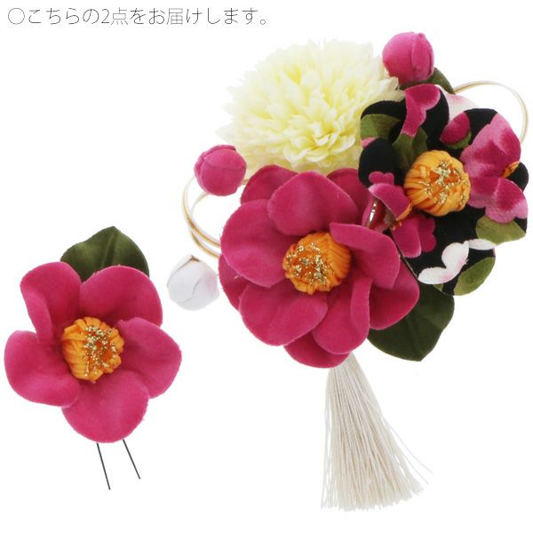 【Prices down3】振袖髪飾り2点セット「ピンク色 椿のお花」お花髪飾り 成人式、前撮り、結婚式の振袖に 卒業式の袴にも 振袖髪飾り (1545)【メール便不可】ss2509wkk15