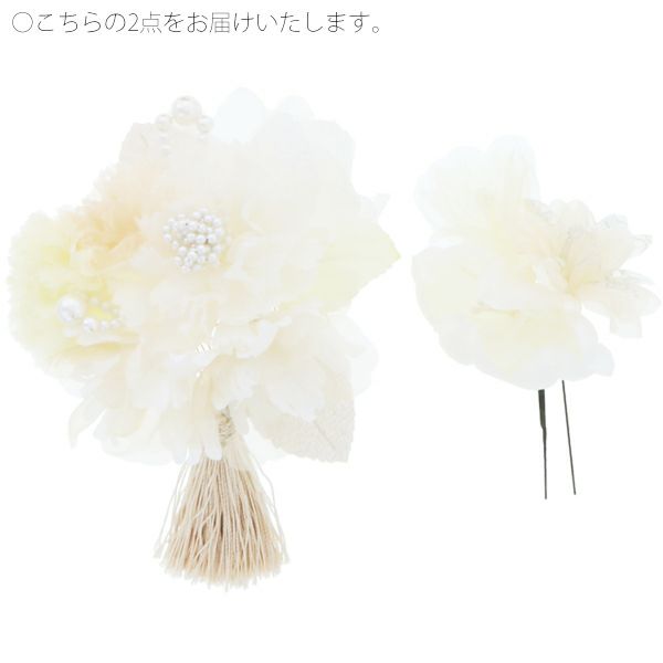 【Prices down2】振袖髪飾り2点セット「白色のお花、パールビーズ」お花髪飾り 成人式、前撮り、結婚式の振袖に 振袖髪飾り (4022)【メール便不可】<H>ss2509wkk40