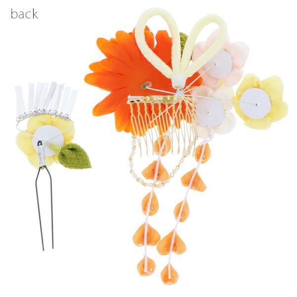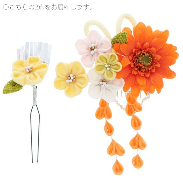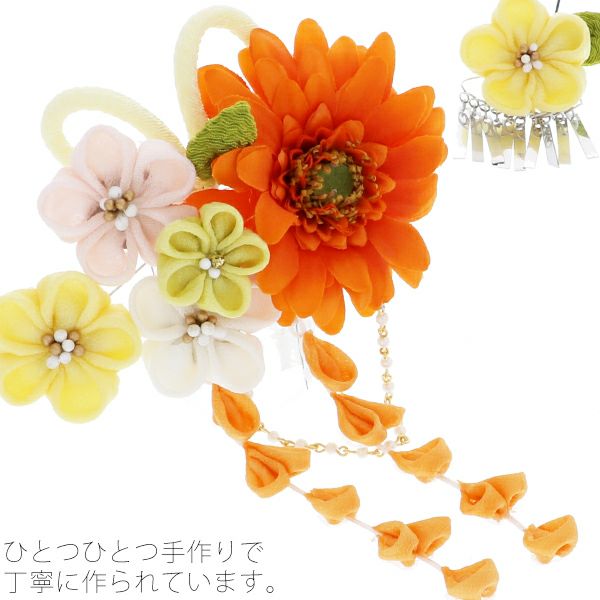 (卒業式応援最大70%OFF 2/5迄)【Prices down2】つまみ細工、お花髪飾り2点セット「オレンジ、イエロー ダリアとつまみのお花」髪飾り 成人式、結婚式 振袖髪飾り お花髪飾り 房飾り No.1569【メール便不可】<H>ss2512wkk35