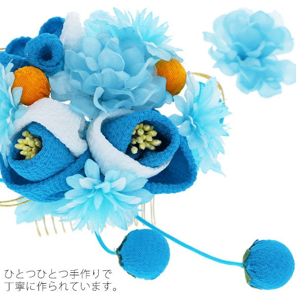 (卒業式応援75%SALE 2/19迄)【Prices down2】振袖、袴髪飾り2点セット「ブルー お花と実」お花髪飾り フラワーコーム 振袖髪飾り 華やか 卒業式の袴に (4076)【メール便不可】<H>ss2512wkk35