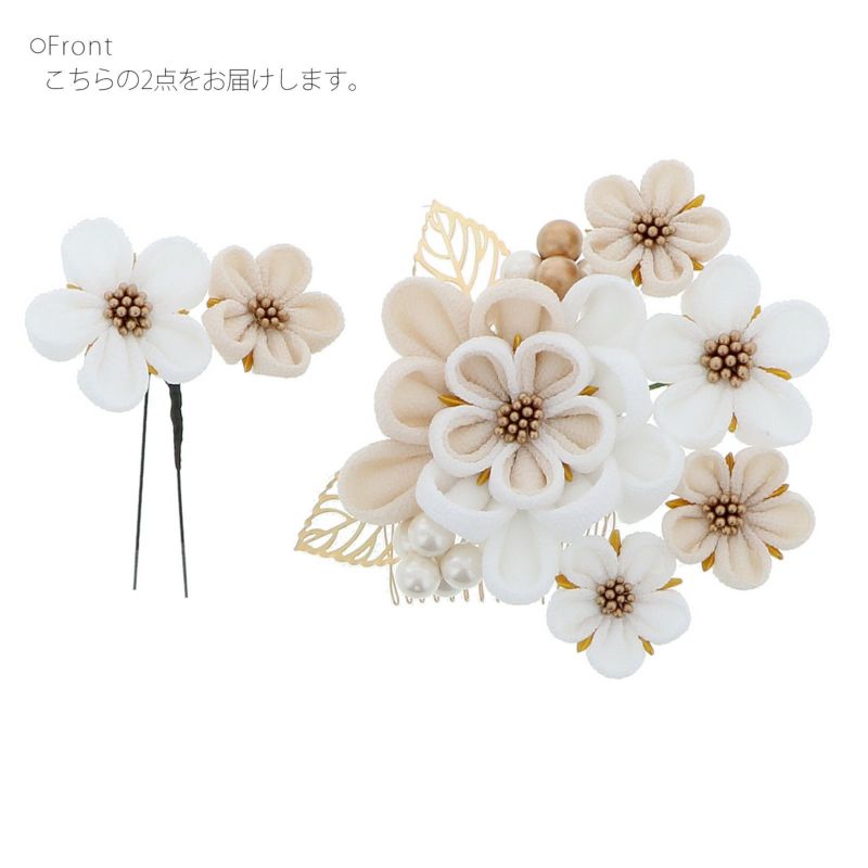 (卒業式応援10%OFFCOUPON1/22迄)髪飾り つまみ細工 成人式 「つまみ飾り 白×ベージュ No.8330」 ゴールドリーフ コームとUピン 振袖用髪飾り お花髪飾り 成人式 卒業式 結婚式 着物 【メール便不可】<H>
