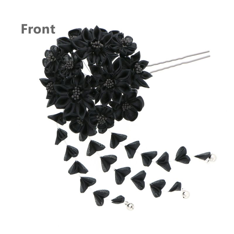 成人式 髪飾り つまみ かんざし 「ダリア 房下がり ブラック」振袖用髪飾り お花髪飾り 成人式 卒業式 結婚式 着物 【メール便不可】