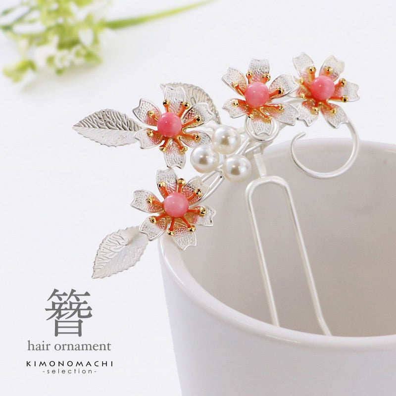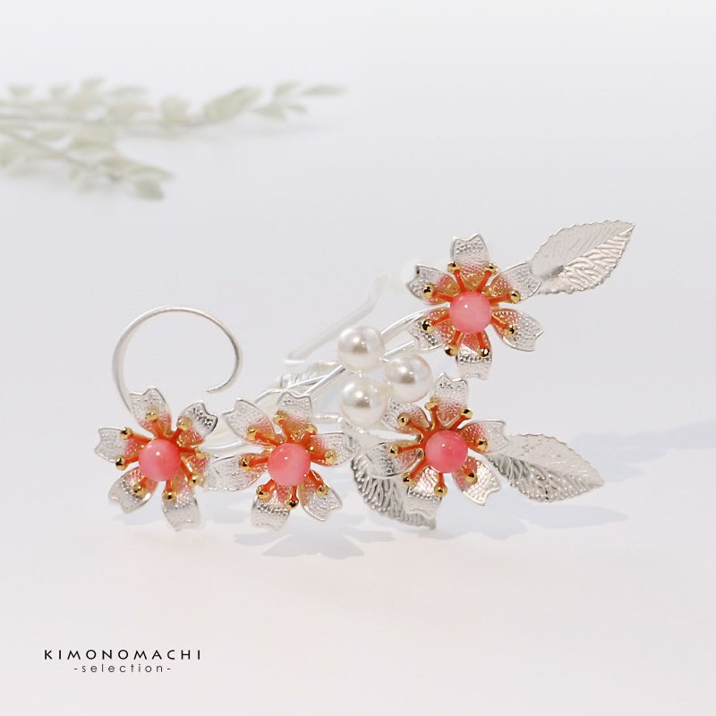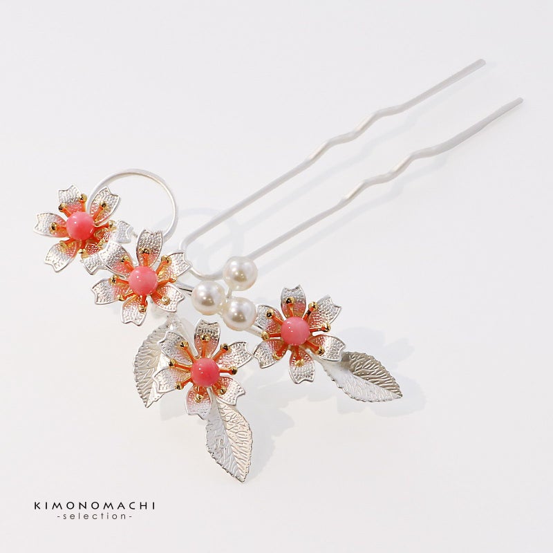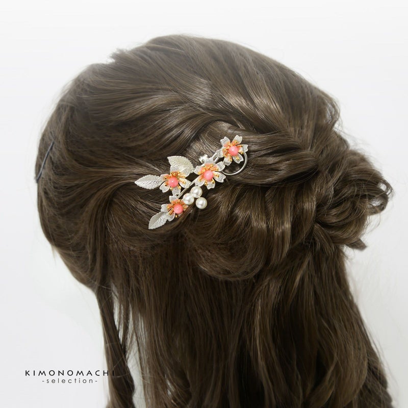 (卒業式応援75%SALE 2/19迄)髪飾り かんざし 単品「六弁花に実 シルバー」日本製 簪 花かんざし 日本髪 和装 着物 礼装 結婚式 和装髪飾り【メール便不可】