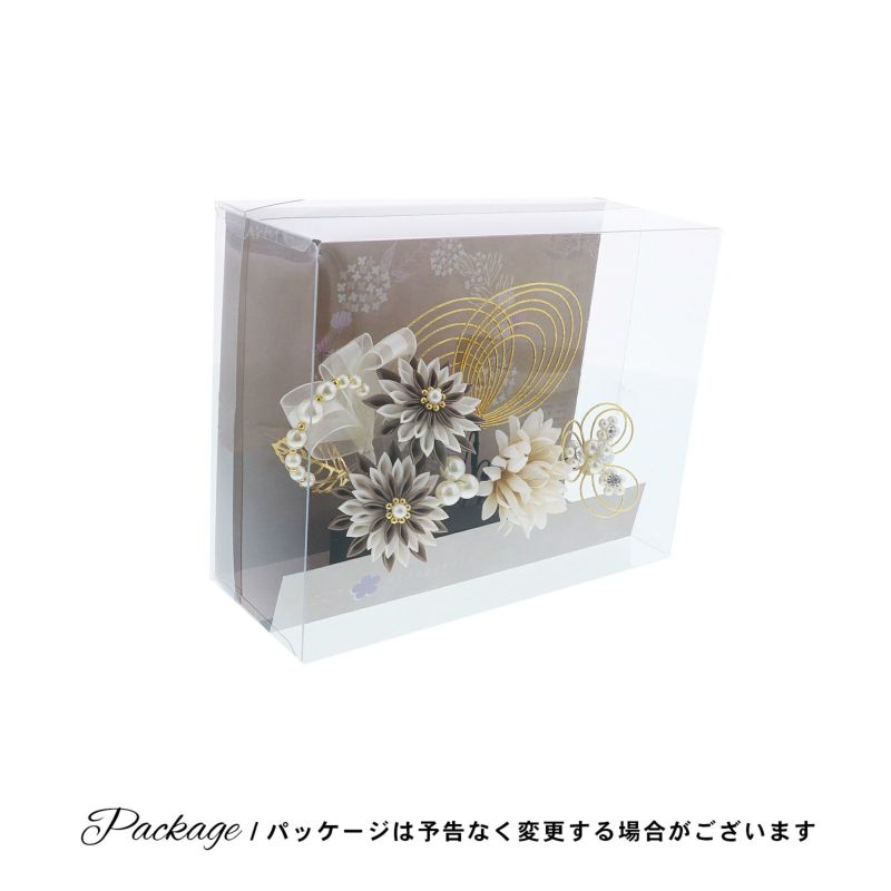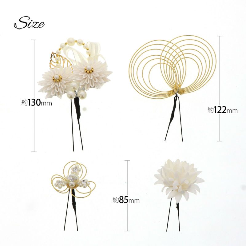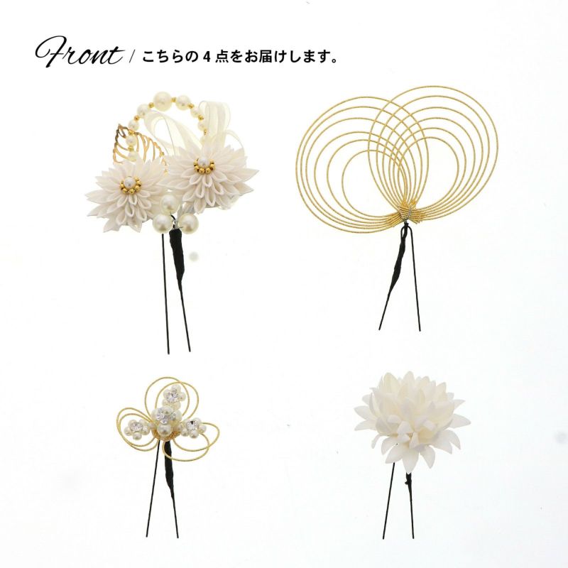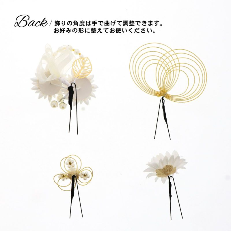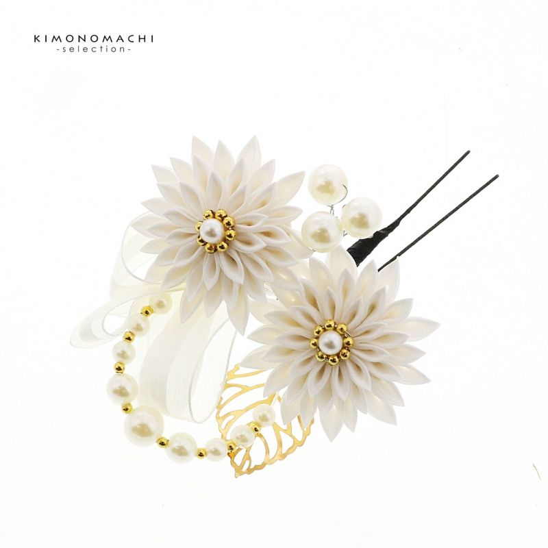 成人式 髪飾り つまみ髪飾り Uピンの4点セット「シロ/ゴールド・ブラウン/ゴールド 剣菊にリボン、水引」日本製 振袖用髪飾り お花髪飾り 成人式 卒業式 結婚式 着物【メール便不可】