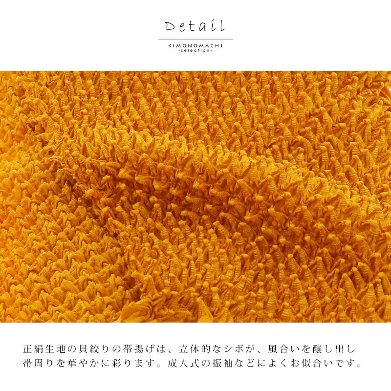 振袖用 帯揚げ 正絹 「貝絞り 柑子色」 総絞り 古典 豪華 成人式 結婚式 振袖小物 帯あげ おびあげ 帯揚 【メール便対応可】