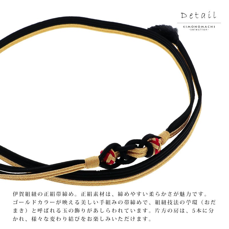 帯締め 伊賀組紐 振袖用 正絹 「黒×金」 日本製 伝統的工芸品 伊賀くみひも 組みひも 帯〆 古典 豪華 おしゃれ お洒落 成人式 結婚式 着物 振袖小物 【メール便不可】