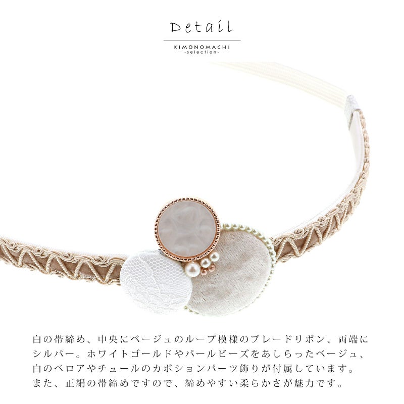 (卒業式駆け込みSALE3/19迄)帯締め 振袖用 帯〆 正絹 「ベロアカボション ホワイト」 和風館 くすみカラー ニュアンスカラー くるみボタン レトロ モダン クラシカル 豪華 おしゃれ お洒落 成人式 結婚式 振袖 正絹帯締め 振袖用帯締め 着物 振袖小物 日本製 【メール便不可】