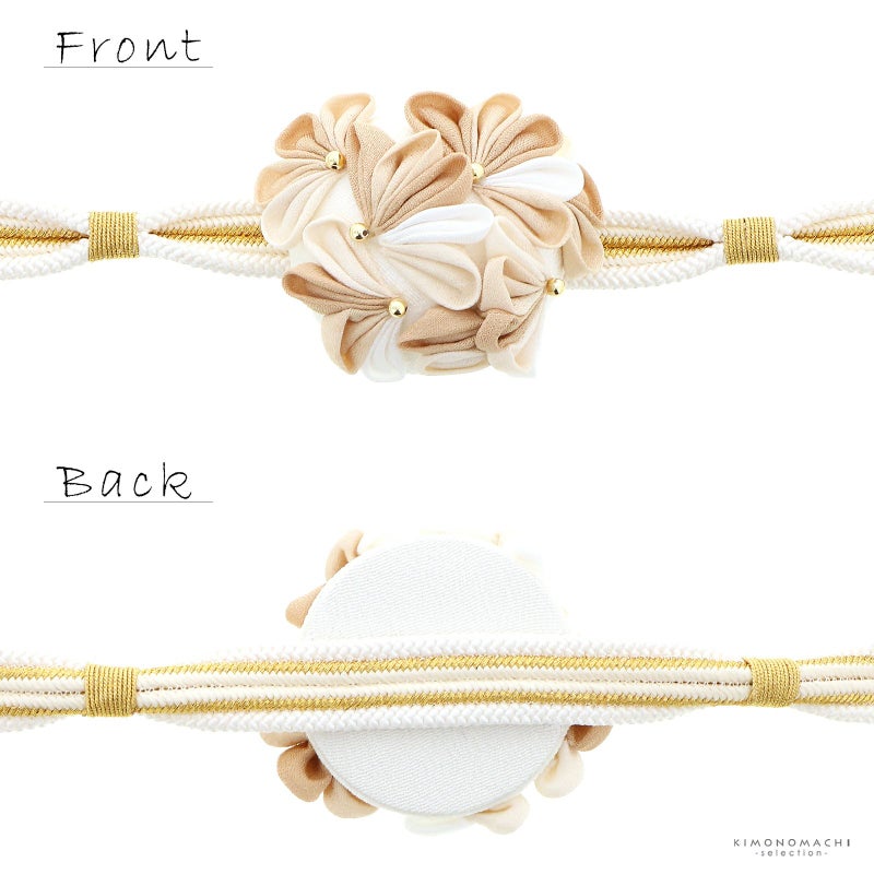 (卒業式応援75%SALE 3/5迄)帯締め 振袖用 帯〆 正絹 「花鞠菊 白×金」 和風館 つまみ細工 レトロ モダン クラシカル 豪華 おしゃれ 古典 和風 お洒落 成人式 結婚式 振袖 正絹帯締め 振袖用帯締め 着物 振袖小物 日本製 【メール便不可】