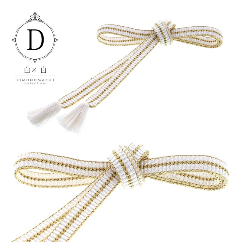 D.白×白:縁と中央のゴールドのラインで区切られた白と白。房はアイボリー。