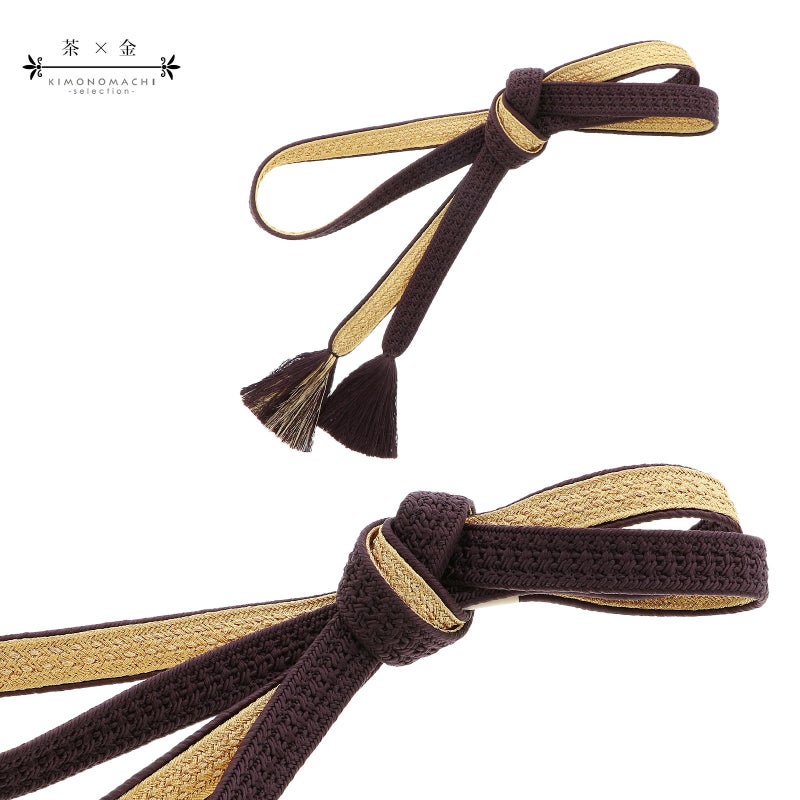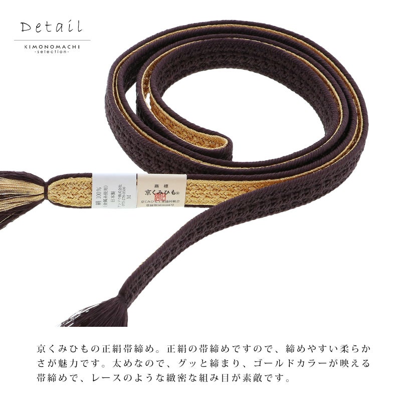 帯締め 振袖用 帯〆 正絹 「茶×金」 日本製 京くみひも シンプル 豪華 おしゃれ お洒落 組紐 くみひも 組みひも 成人式 結婚式 振袖 正絹帯締め 振袖用帯締め 着物 振袖小物 【メール便不可】