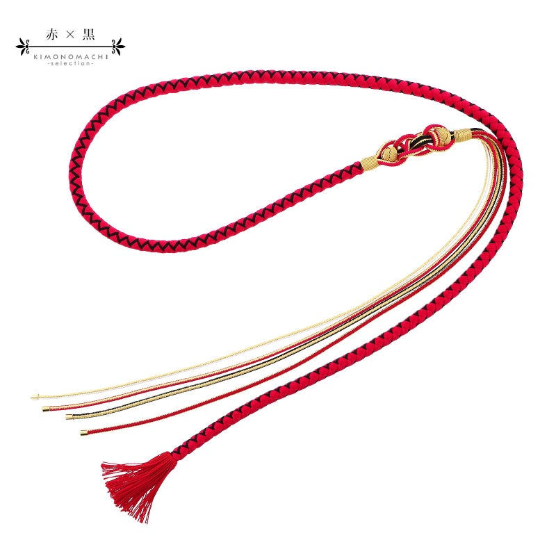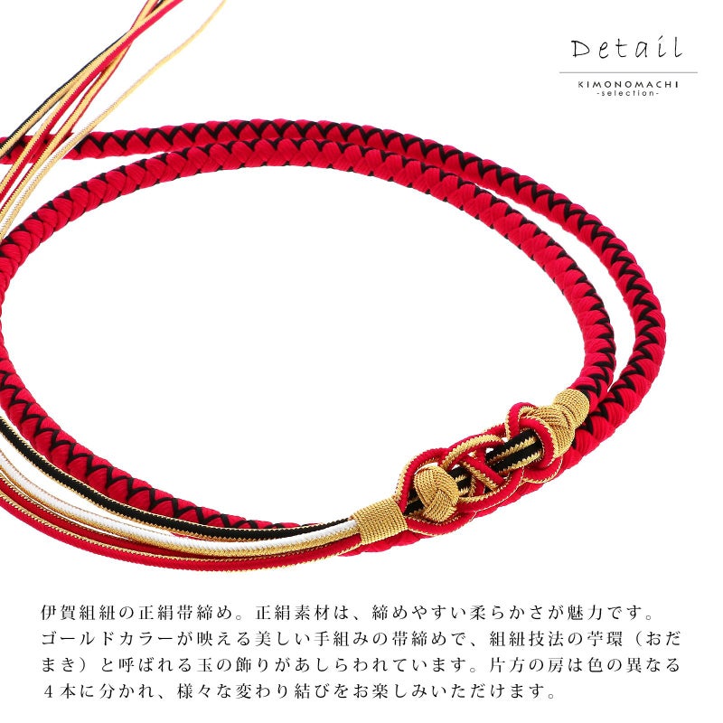 4. 帯締め 伊賀組紐 振袖用 正絹 「赤×黒」 日本製 伝統的工芸品 伊賀くみひも 組みひも 帯〆 古典 豪華 おしゃれ お洒落 成人式 結婚式 着物 振袖小物 【メール便不可】