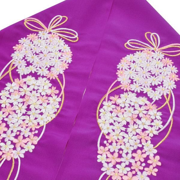 (卒業式応援75%SALE 3/5迄)【Prices down5】振袖半衿「紫色 花薬玉」刺繍半衿 振袖衿 華やか 半襟 E-1255花くす玉刺繍半衿【メール便対応可】ss2512wkm35