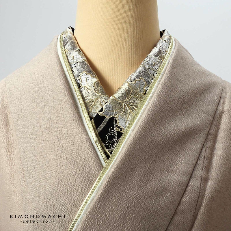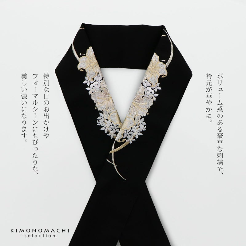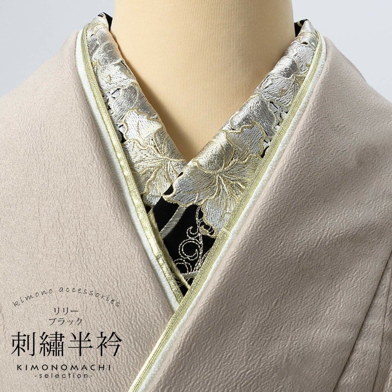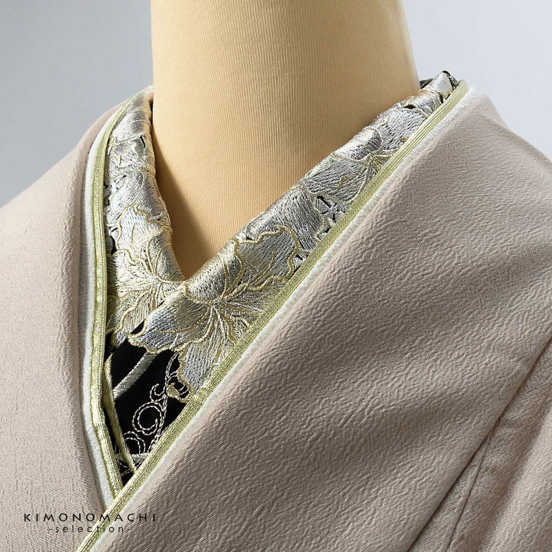 半衿自体のおしゃれに加えて、長襦袢の襟元の汚れを防ぐ役割と、着付けを美しく見せる役割も担っています。