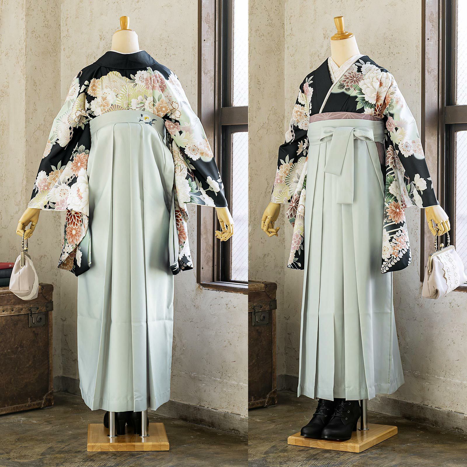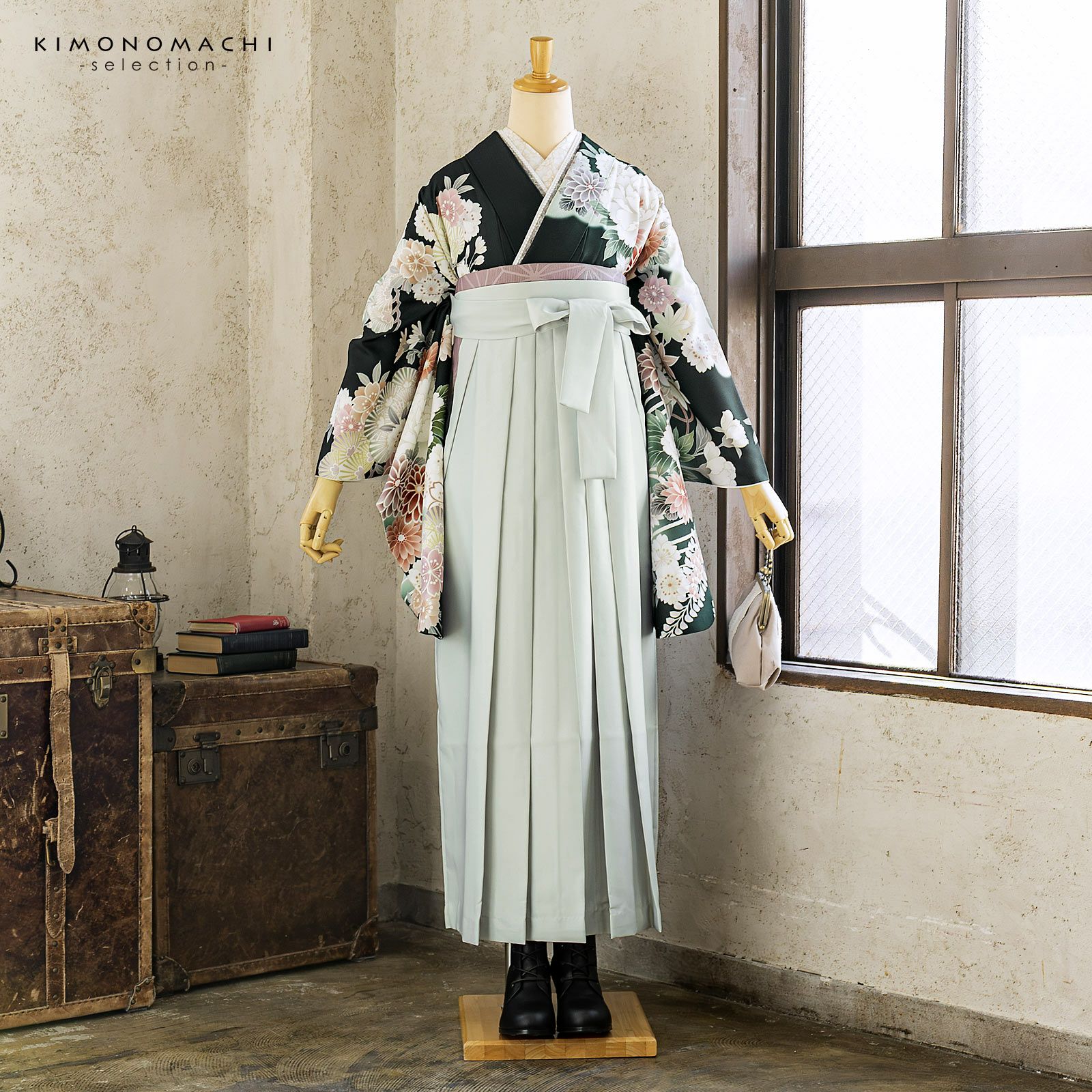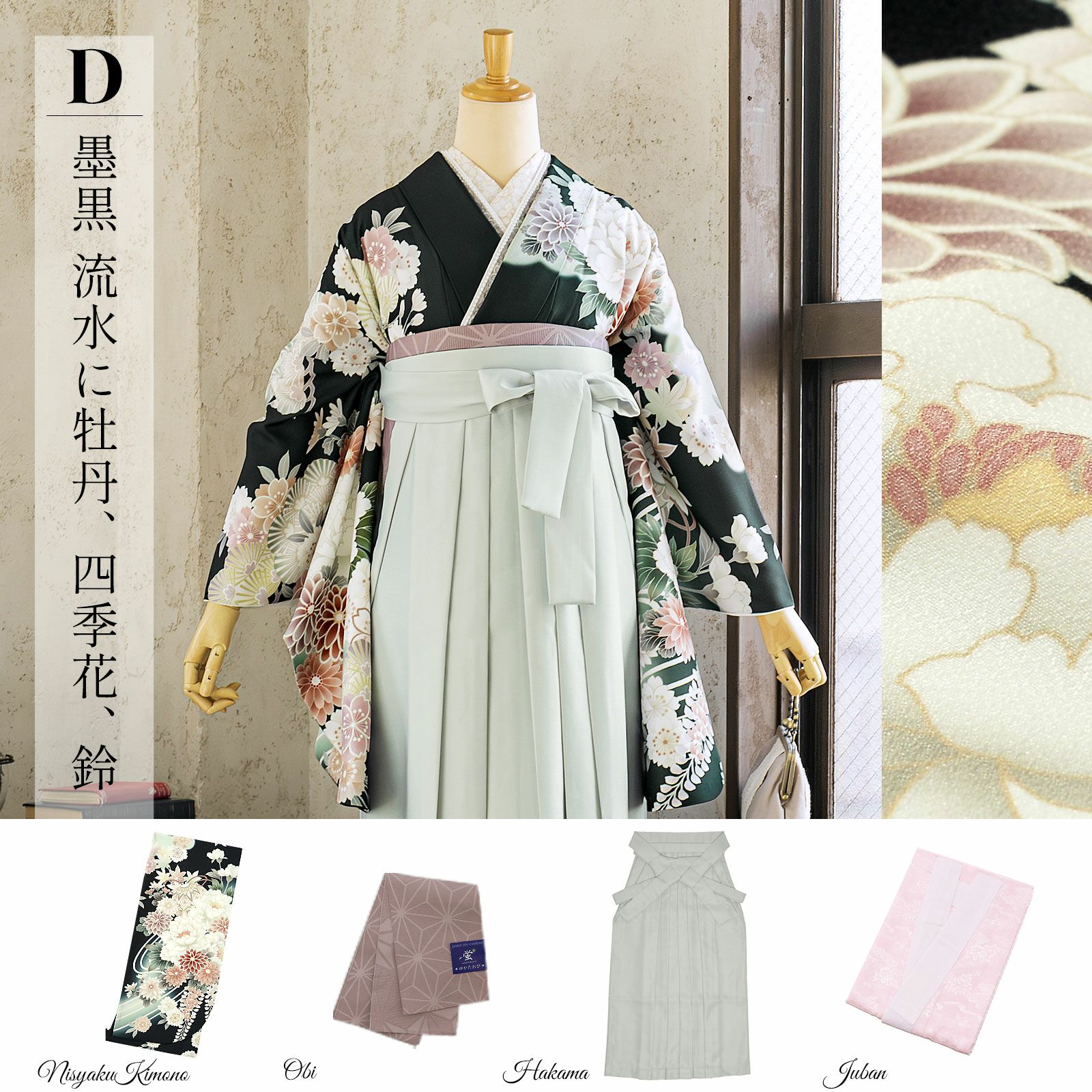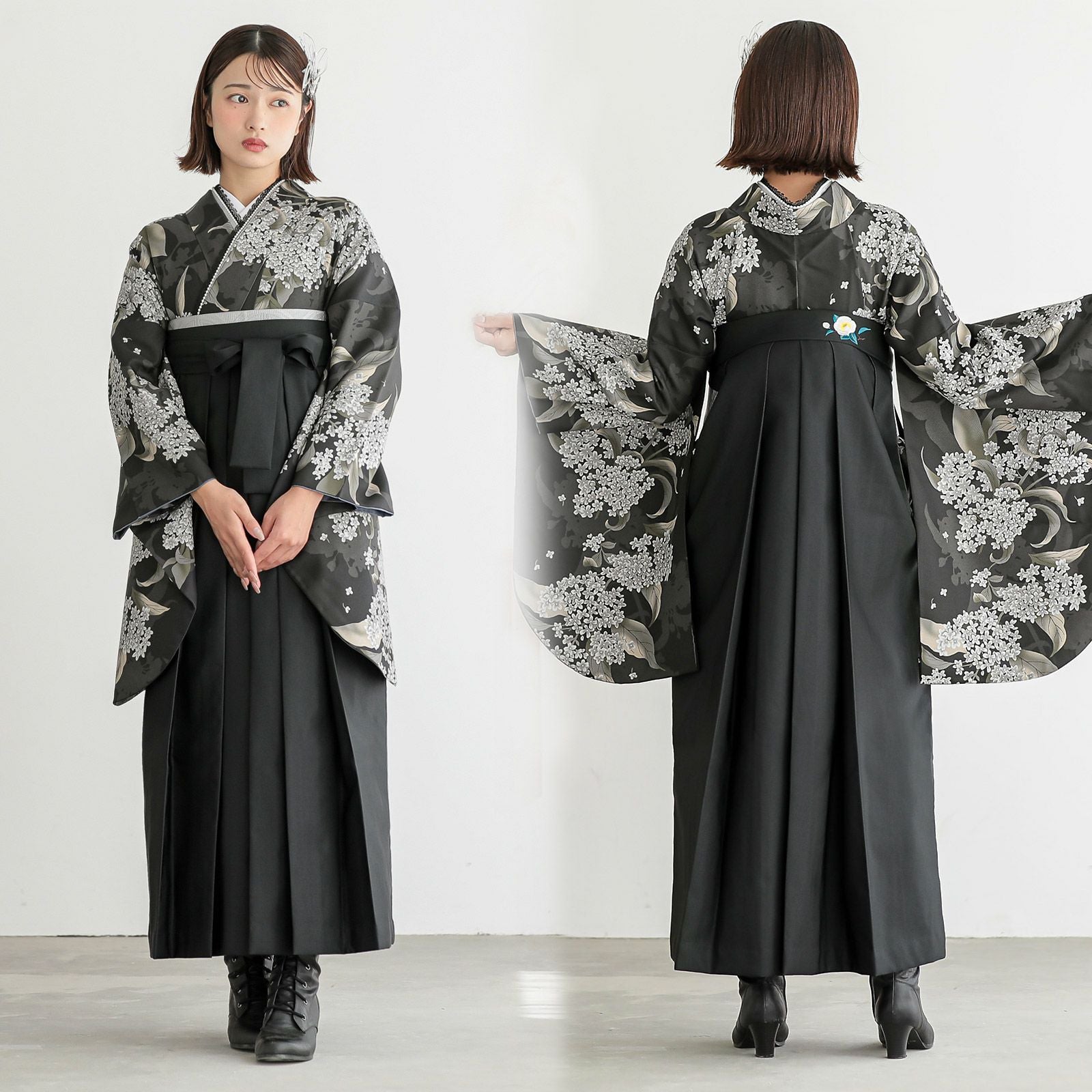 他の画像を見る 送料無料 卒業式に 二尺袖袴セット 卒業式 袴 レディース 袴 セット 卒業式 女性 4点セット「二尺袖:墨黒 流水に牡丹、四季花、鈴+袴 アイスグレー椿:+袴下帯:ダルパープル 麻の葉+襦袢」SS/S/M/L/LL サイズ 卒業式 女性 レディース お仕立て上がり 袴セット 二尺袖着物セット 着物 二尺着物 袴【メール便不可】 きもの町価格 ¥ 94,050 税込 カートに入れる お気に入りに登録する