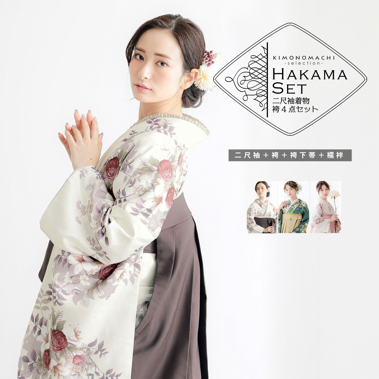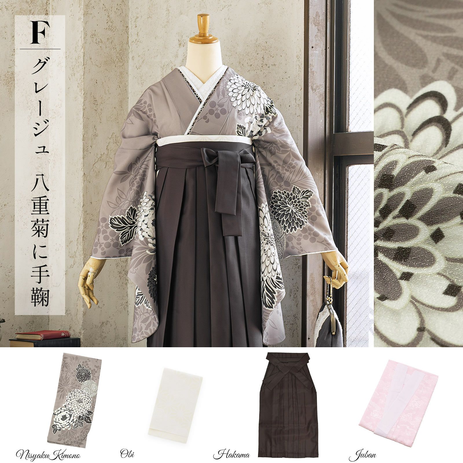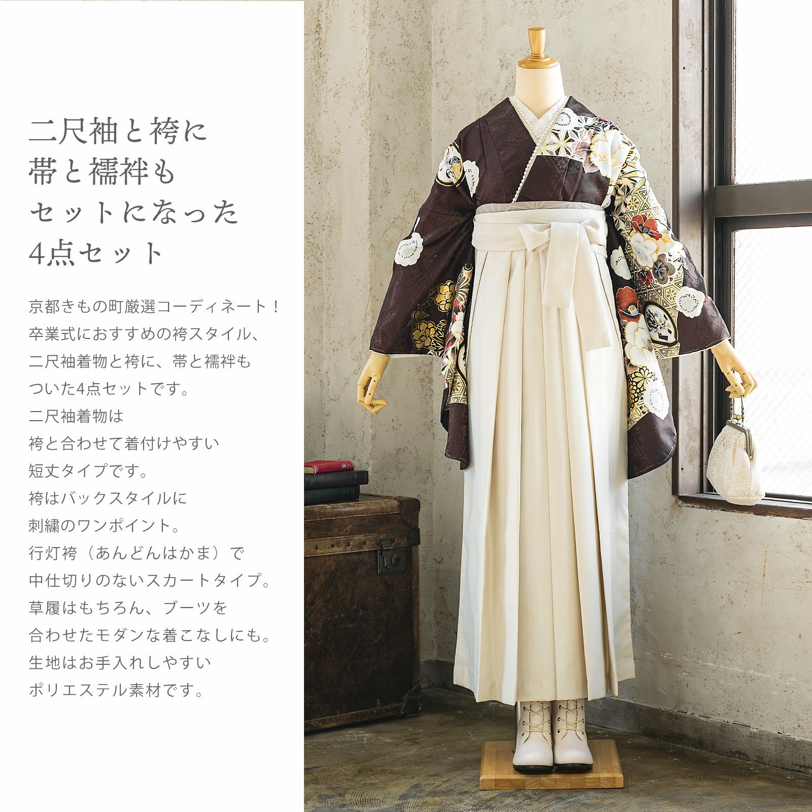 他の画像を見る 送料無料 卒業式に 二尺袖袴セット 卒業式 袴 レディース 袴 セット 卒業式 女性 4点セット「二尺袖:グレージュ 八重菊に手鞠+袴:アンティークブラウン 椿+袴下帯:麻の葉 白+襦袢」SS/S/M/L/LL サイズ 卒業式 女性 レディース お仕立て上がり 袴セット 二尺袖着物セット 着物 二尺着物 袴【メール便不可】 きもの町価格 ¥ 94,050 税込 カートに入れる お気に入りに登録する