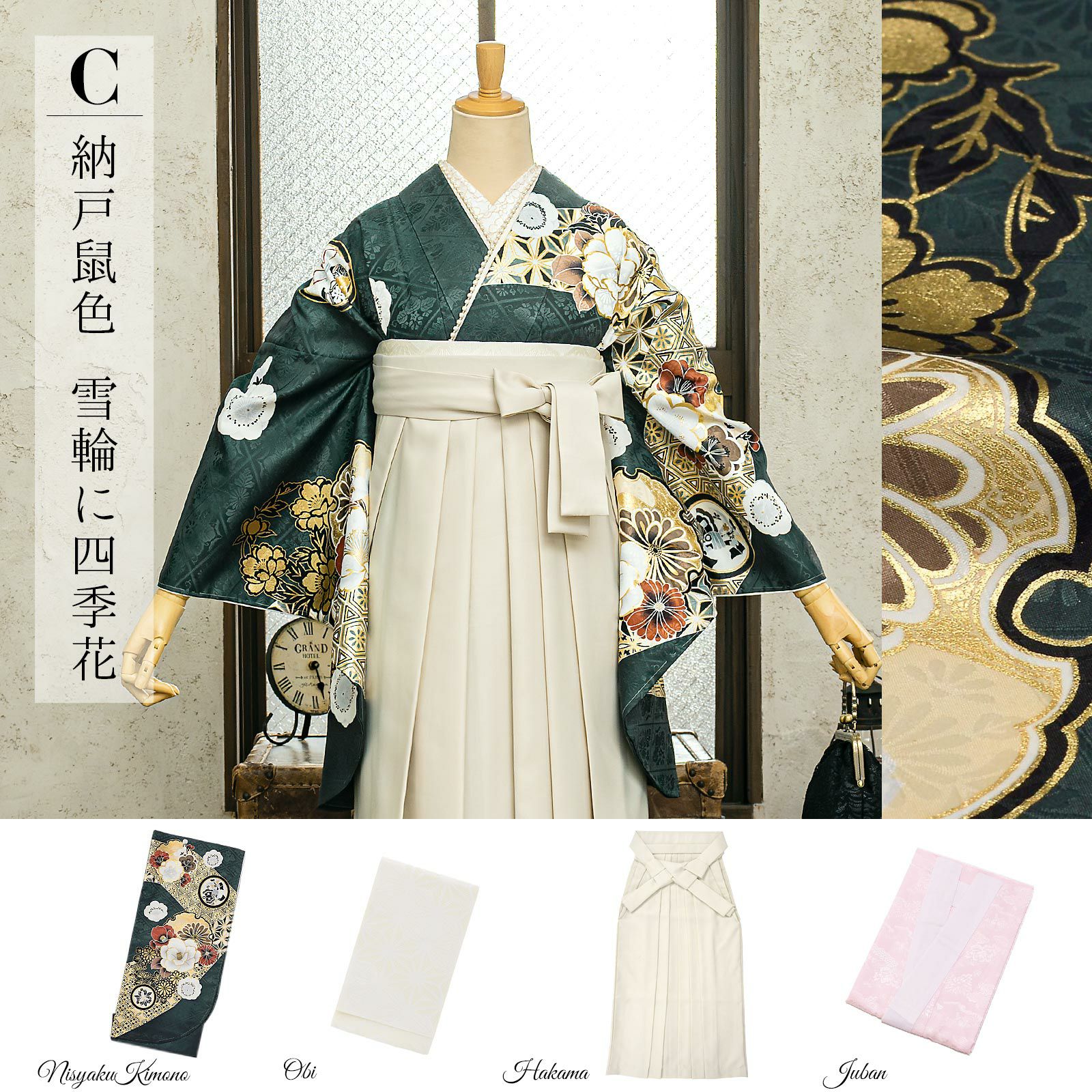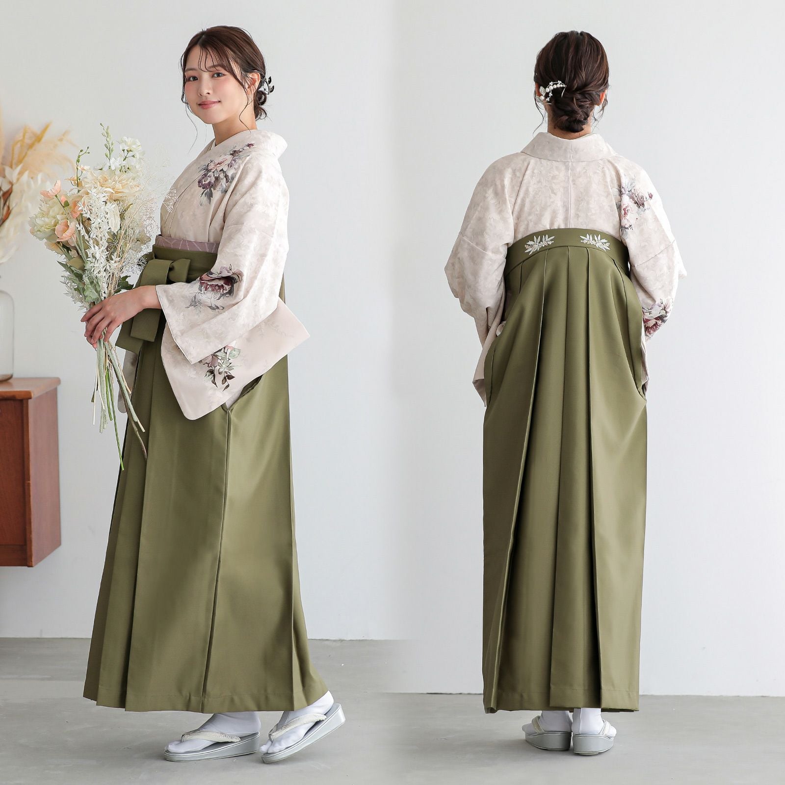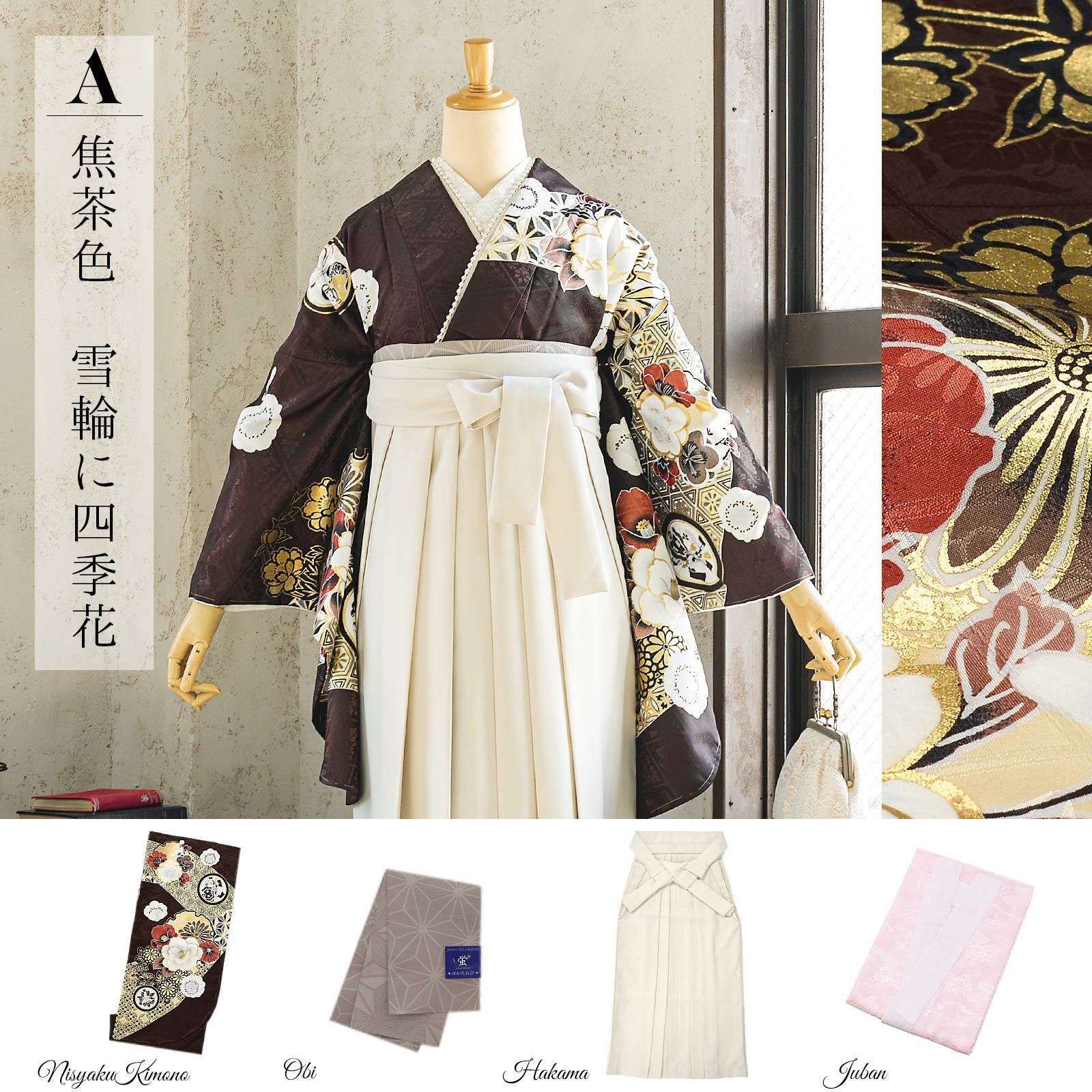 他の画像を見る 送料無料 卒業式に 二尺袖袴セット 卒業式 袴 レディース 袴 セット 卒業式 女性 4点セット「二尺袖:グレージュ 八重菊に手鞠+袴:アンティークブラウン 椿+袴下帯:麻の葉 白+襦袢」SS/S/M/L/LL サイズ 卒業式 女性 レディース お仕立て上がり 袴セット 二尺袖着物セット 着物 二尺着物 袴【メール便不可】 きもの町価格 ¥ 94,050 税込 カートに入れる お気に入りに登録する