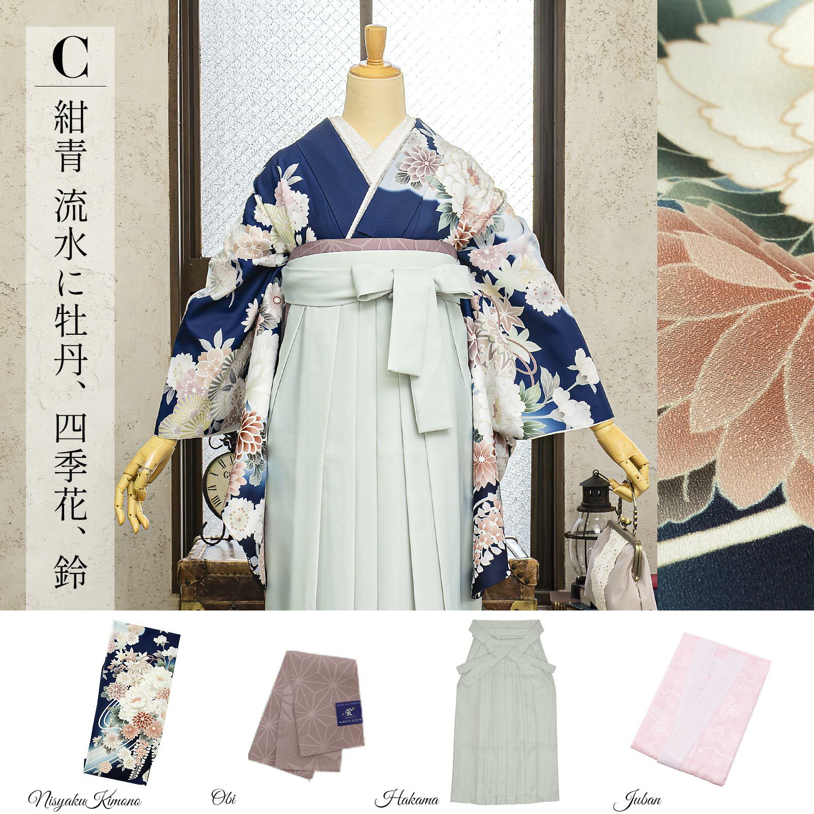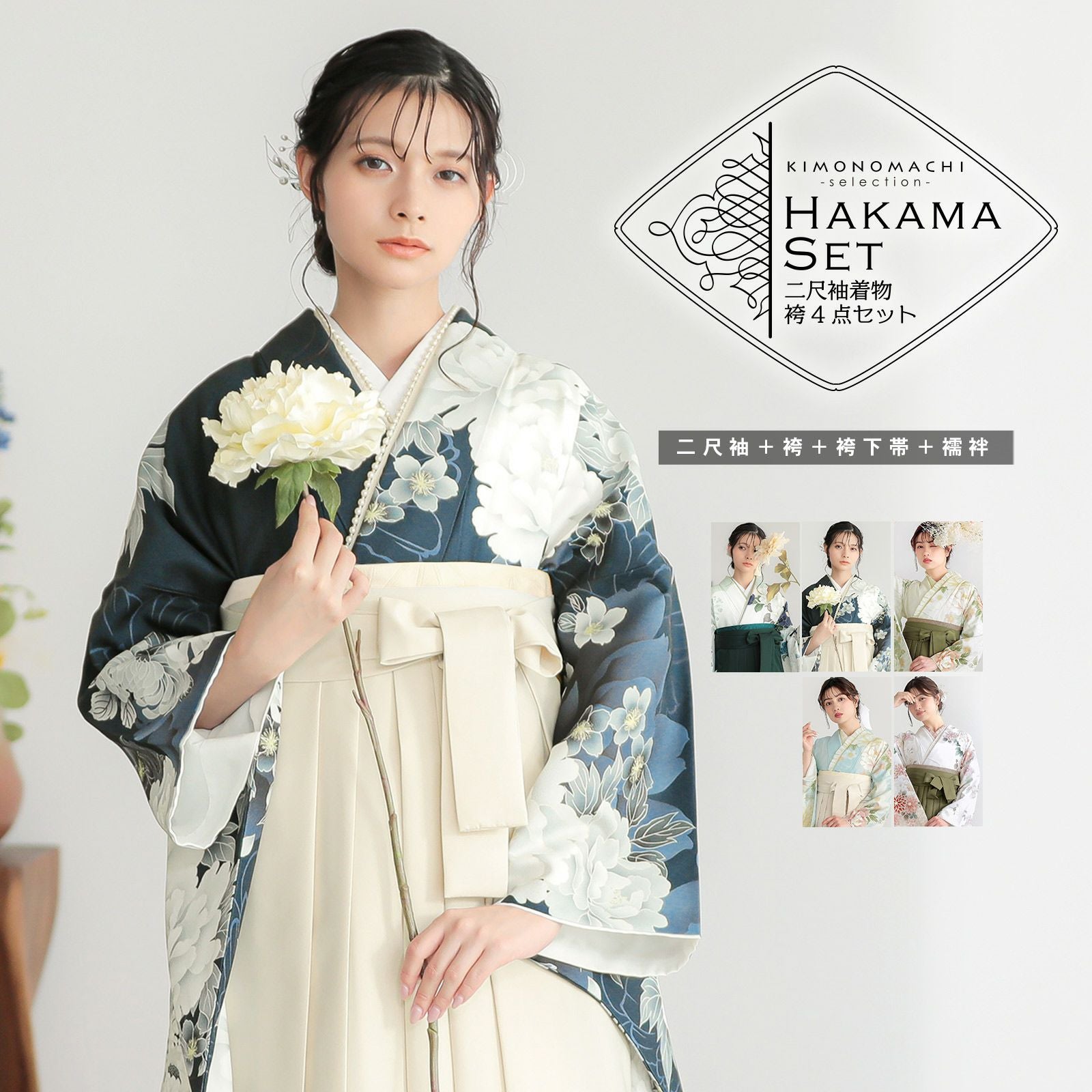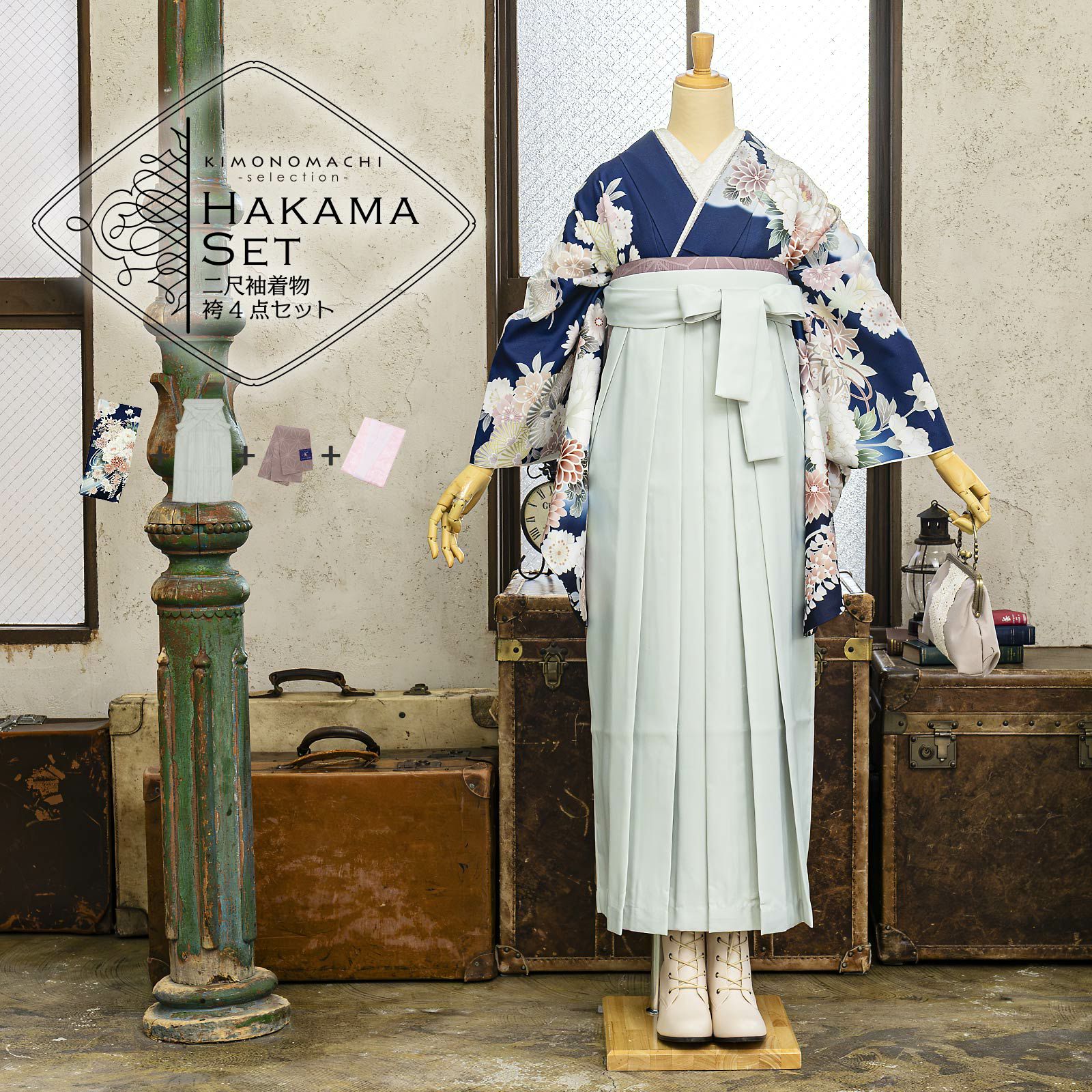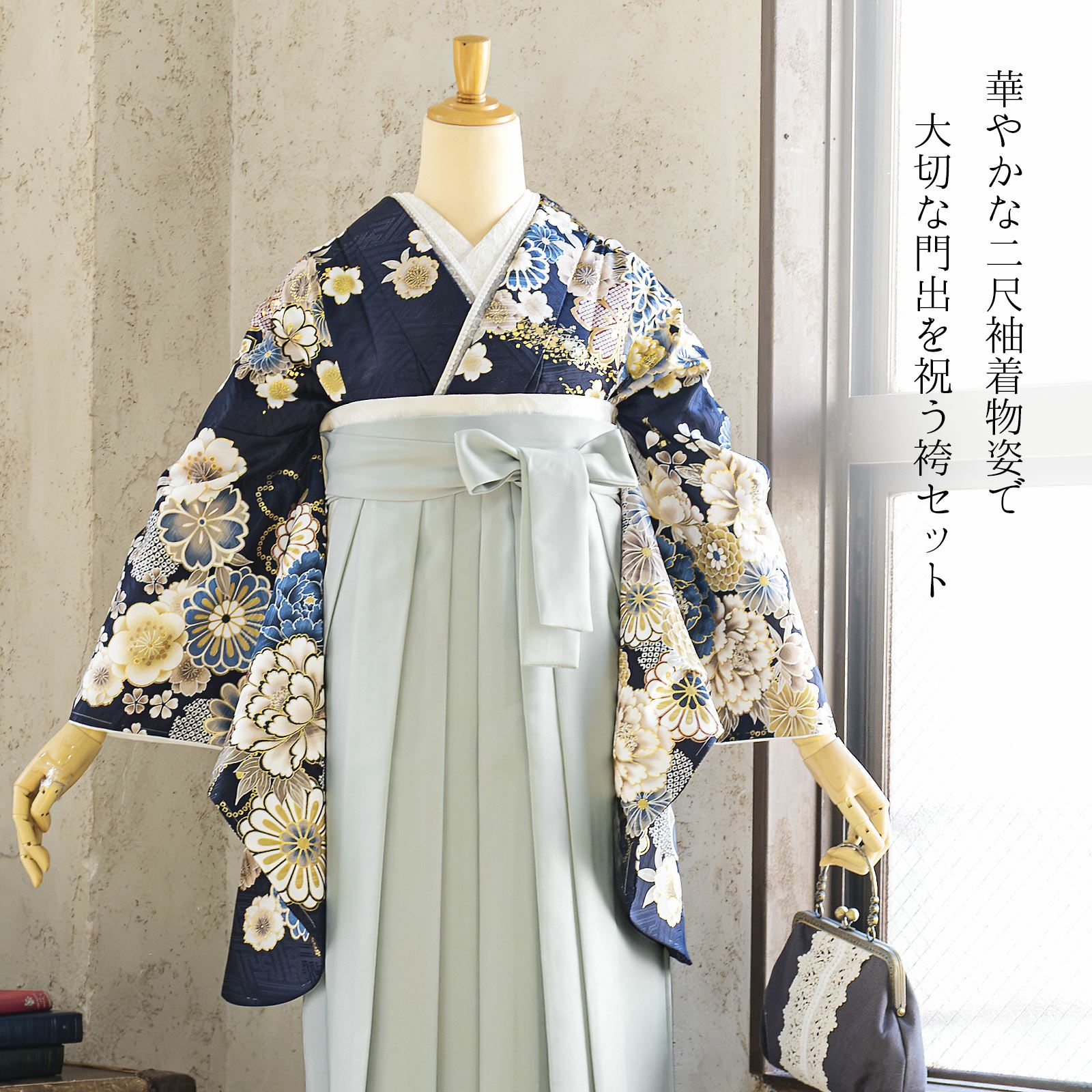 他の画像を見る 送料無料 卒業式に 二尺袖袴セット 卒業式 袴 レディース 袴 セット 卒業式 女性 4点セット「二尺袖:紺青 流水に牡丹、四季花、鈴+袴 アイスグレー椿:+袴下帯:ダルパープル 麻の葉+襦袢」SS/S/M/L/LL サイズ 卒業式 女性 レディース お仕立て上がり 袴セット 二尺袖着物セット 着物 二尺着物 袴【メール便不可】 きもの町価格 ¥ 94,050 税込 カートに入れる お気に入りに登録する