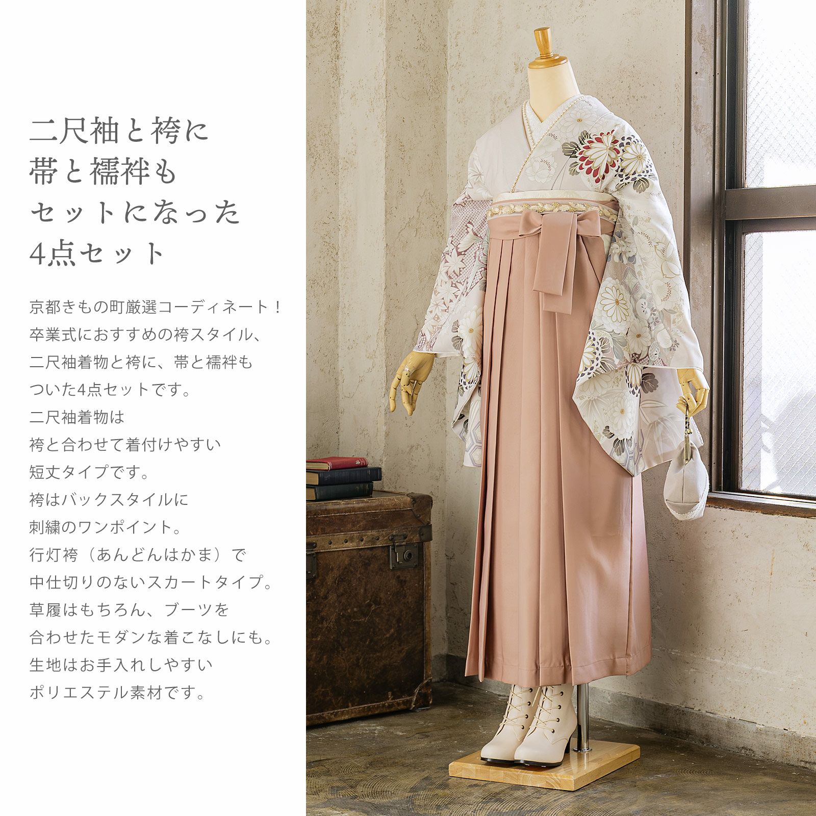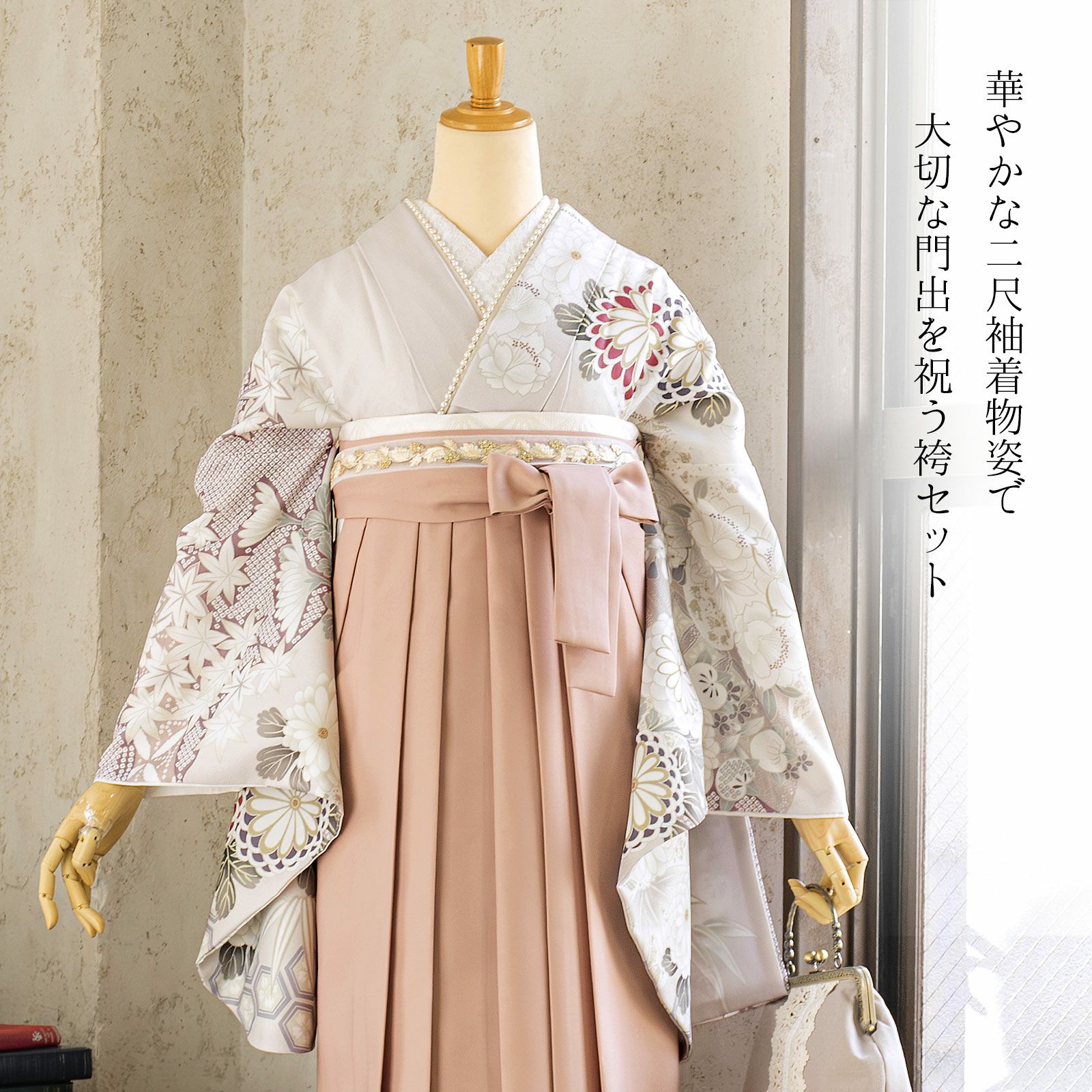 他の画像を見る 送料無料 卒業式に 二尺袖袴セット 卒業式 袴 レディース 袴 セット 卒業式 女性 4点セット「二尺袖:ペールローズ 丸菊に四季花+袴:スモーキーピンク南天+袴下帯:麻の葉 白+襦袢」3S/SS/S/M/L/LL サイズ 卒業式 女性 レディース お仕立て上がり 袴セット 二尺袖着物セット 着物 二尺着物 袴【メール便不可】 きもの町価格 ¥ 94,050 税込 カートに入れる お気に入りに登録する