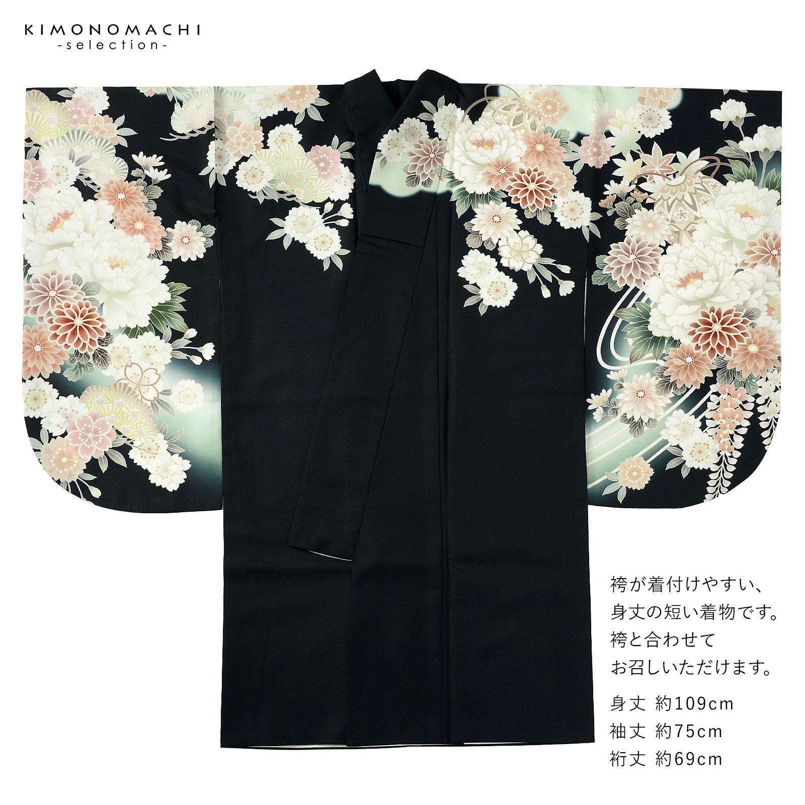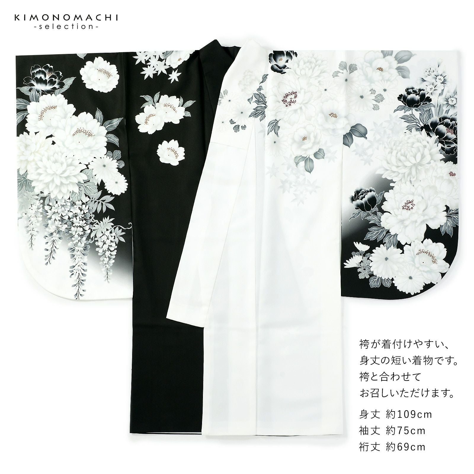 他の画像を見る 送料無料 卒業式、謝恩会に 袴に合わせて華やかに 二尺袖着物 二尺袖着物 単品「黒×白 牡丹に四季花」Fサイズ お仕立て上がり 短丈 ショート丈 レディース 洗える着物 二尺袖 着物 袴に合わせて 卒業式 謝恩会【メール便不可】 きもの町価格 ¥ 77,000 税込 カートに入れる お気に入りに登録する