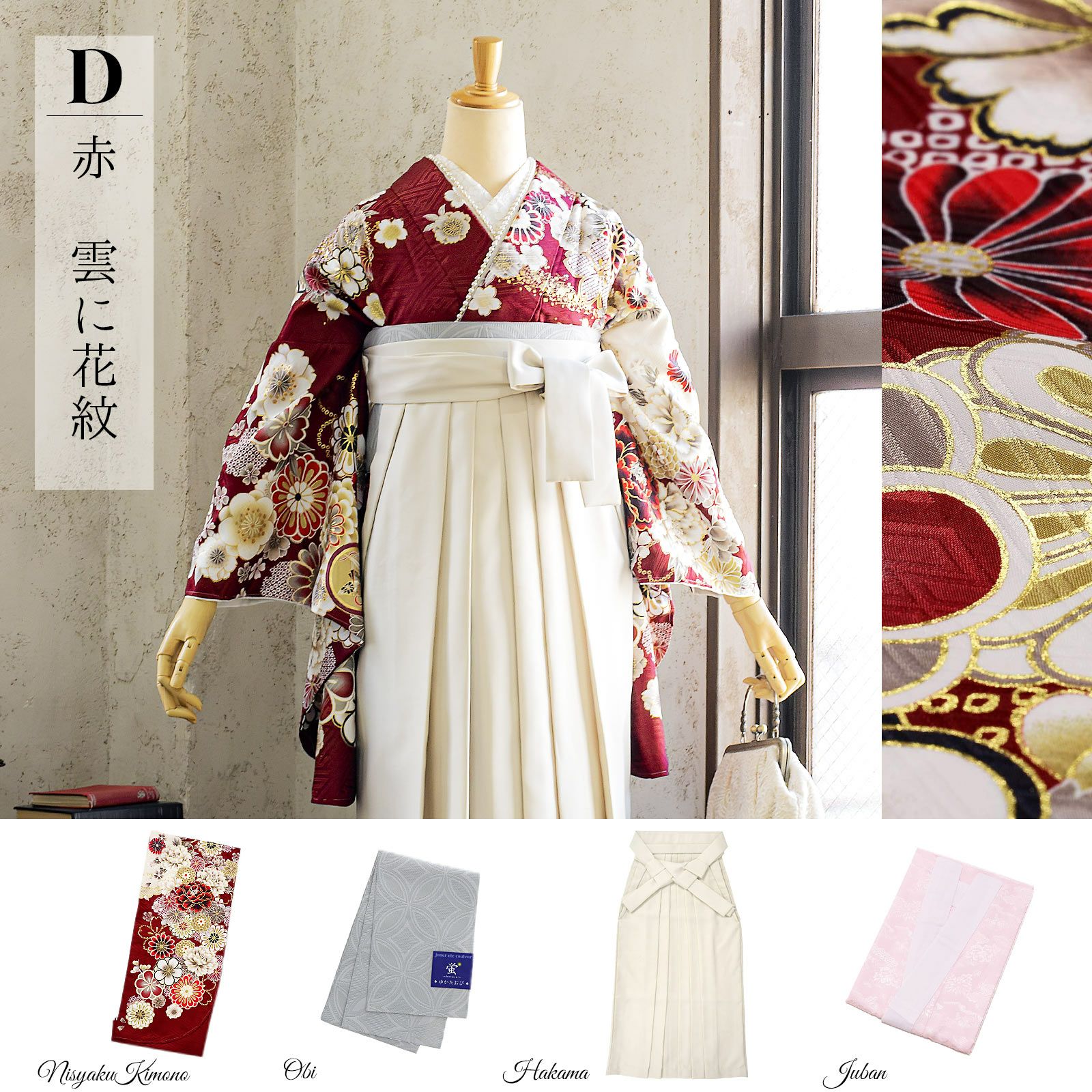 他の画像を見る 送料無料 卒業式に 二尺袖袴セット 卒業式 袴 レディース 袴 セット 卒業式 女性 4点セット「二尺袖:紫紺 雲に四季花+袴:エンジ 無地+袴下帯:白 麻の葉+襦袢」S/M/L/LL サイズ 卒業式 女性 レディース お仕立て上がり 袴セット 二尺袖着物セット 着物 二尺着物 袴【メール便不可】 きもの町価格 ¥ 52,860 税込 カートに入れる お気に入りに登録する