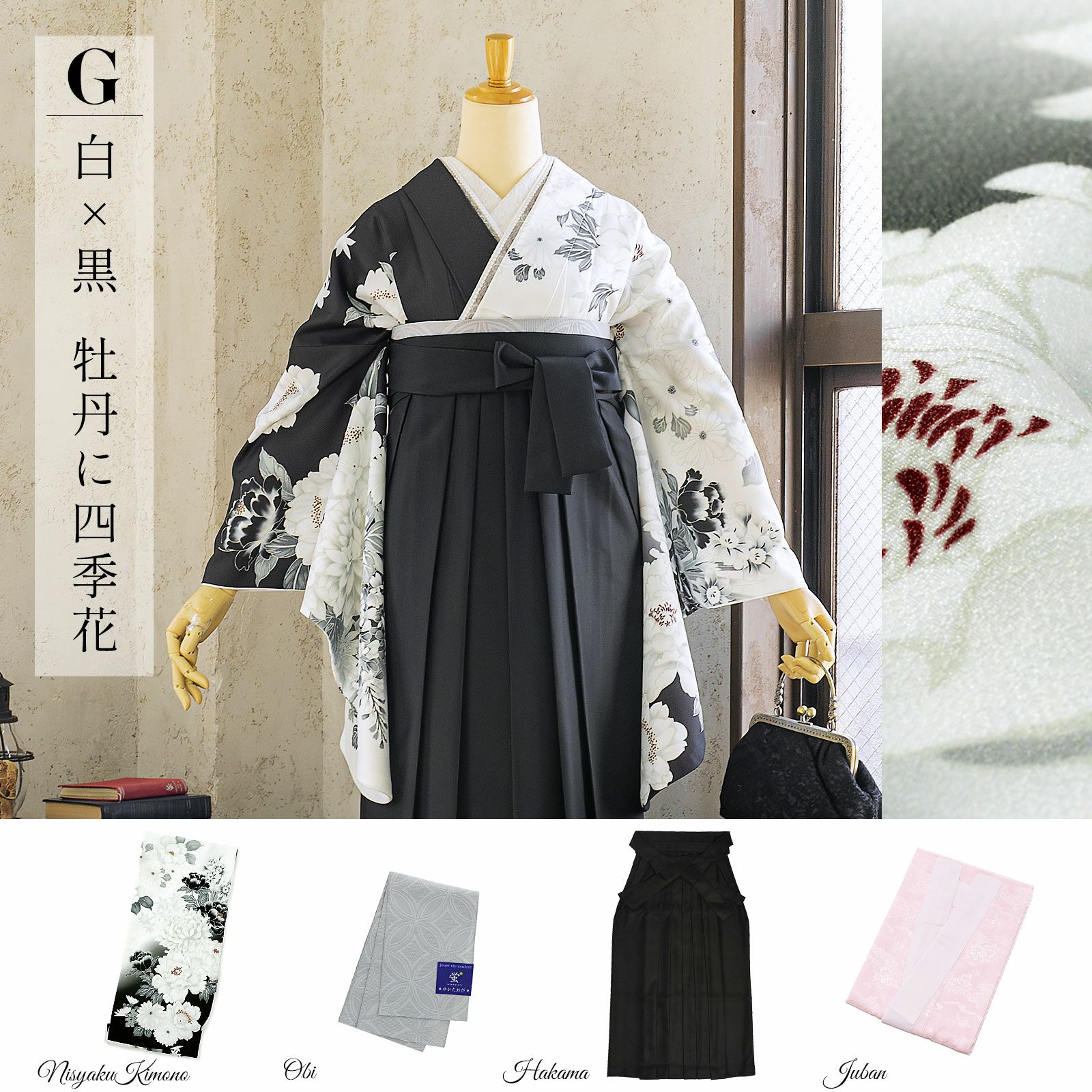 他の画像を見る 送料無料 卒業式、謝恩会に 袴に合わせて華やかに 二尺袖着物 二尺袖着物 単品「白×黒 牡丹に四季花」Fサイズ お仕立て上がり 短丈 ショート丈 レディース 洗える着物 二尺袖 着物 袴に合わせて 卒業式 謝恩会【メール便不可】 きもの町価格 ¥ 77,000 税込 カートに入れる お気に入りに登録する