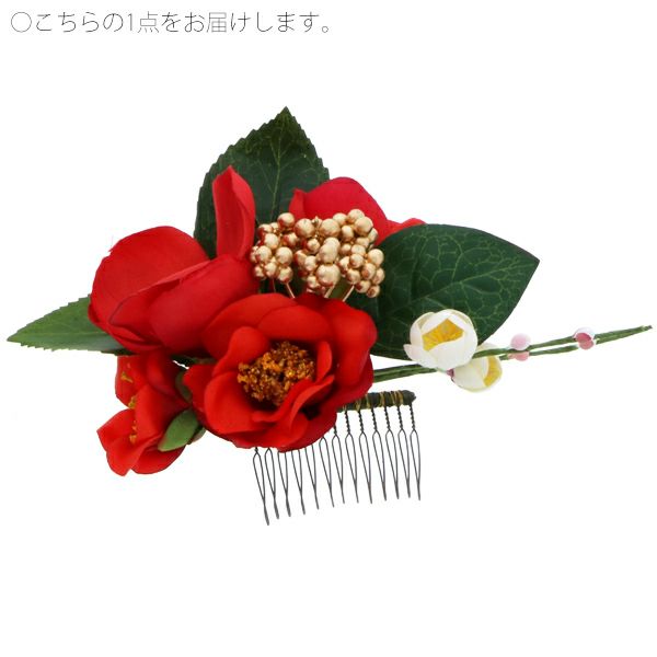 (卒業式応援75%SALE 2/19迄)【Prices down4】振袖髪飾り単品「赤色 椿」お花髪飾り 成人式、前撮り、結婚式の振袖に フラワーコーム 振袖髪飾り (6489-1)【メール便不可】ss2512wkk30