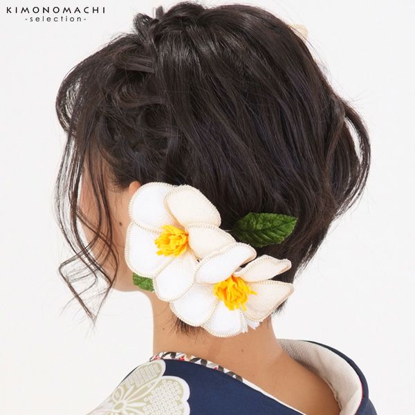 (卒業式応援75%SALE 2/19迄)振袖髪飾り2点セット「白色 ふっくら椿の髪飾り」お花髪飾り 成人式、前撮り、結婚式の振袖に 振袖髪飾り (2277)【メール便不可】<H>ss2512wkk10