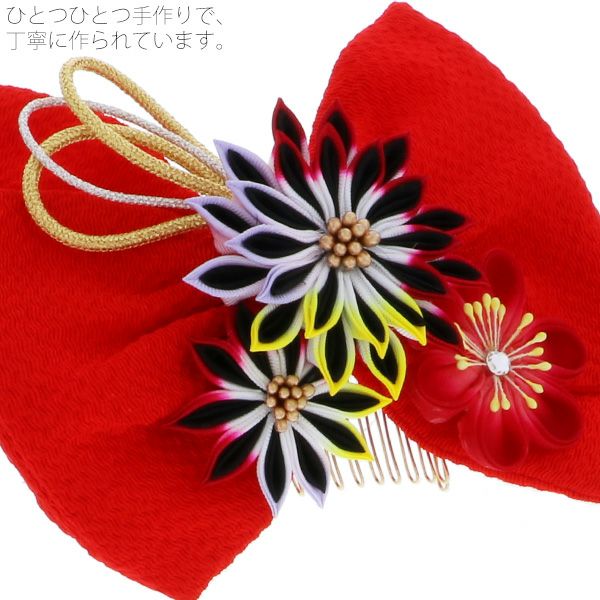 (卒業式応援75%SALE 2/19迄)リボン髪飾り単品「赤色のリボン、つまみのお花、金銀の紐飾り」袴髪飾り 成人式、前撮り、結婚式の振袖に リボンコーム 振袖髪飾り (TE18-02)【メール便不可】<H>ss2512wkk10