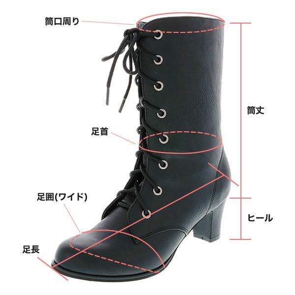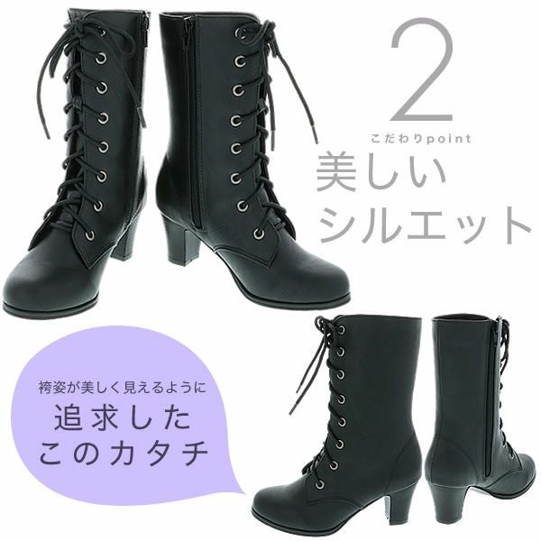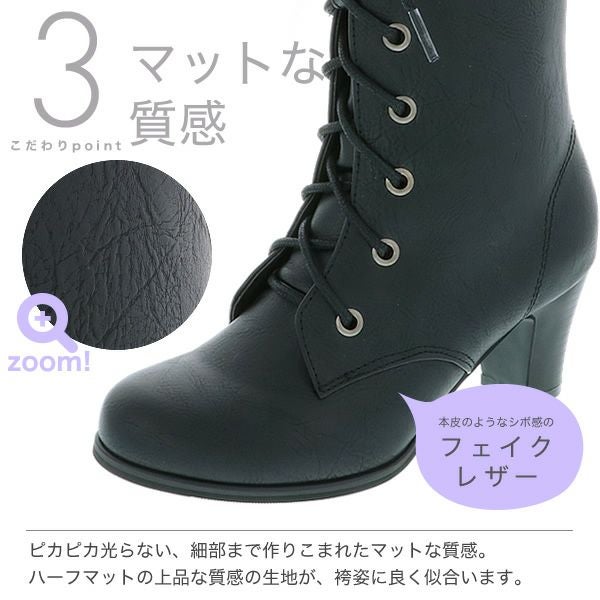 シンプルな黒色の編み上げブーツ(レースアップブーツ)です。