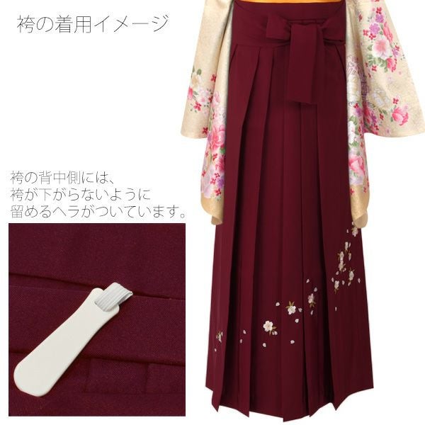 (卒業式応援75%SALE 3/5迄)無地袴単品「エンジ 桜の刺繍」4S、3S、2S、S、M、L、2L 袴 ジュニア袴 刺繍袴 卒業式、修了式に はいからさんスタイル 先生袴 【メール便不可】ss2112hkm20ss2206hkm20