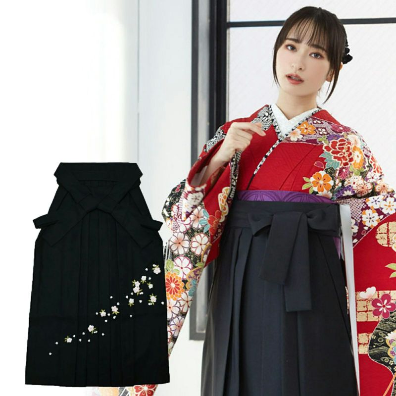 (卒業式応援75%SALE 2/19迄)無地袴 桜の刺繍 黒 緑 エンジ 紫 紺 4サイズ:S、M、L、LL(2L) 卒業式 修了式 先生 教員 レディース 女の子 行灯 ヘラ付き 小学校 大きいサイズ 小さいサイズ ブラック ネイビー パープル グリーン【メール便不可】